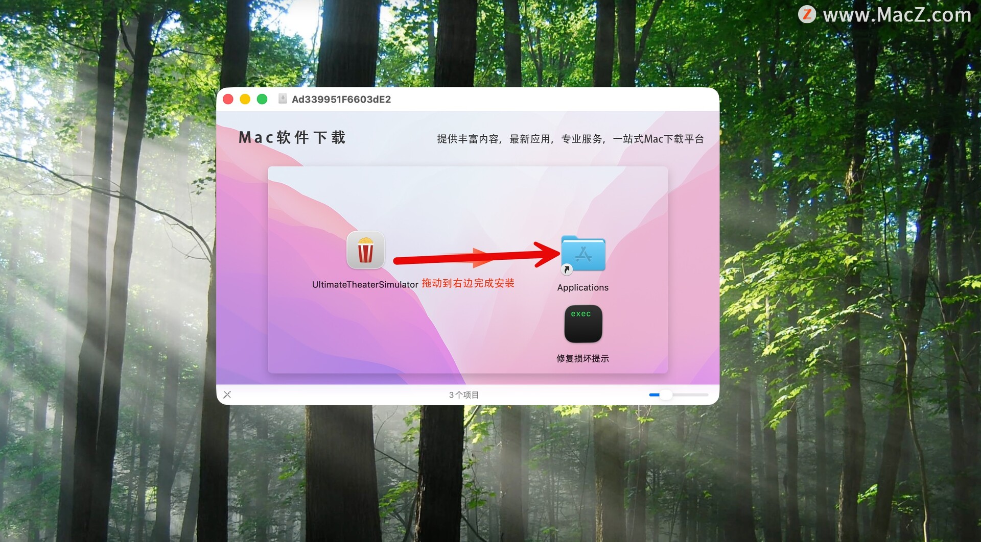 将Ultimate Theater Simulator拖动到应用程序中即可,如图