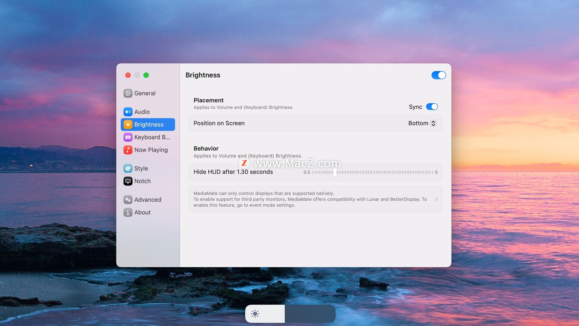 MediaMate 为音量、屏幕和键盘亮度 HUD 带来全新视觉效果,并新增了“正在播放”HUD!