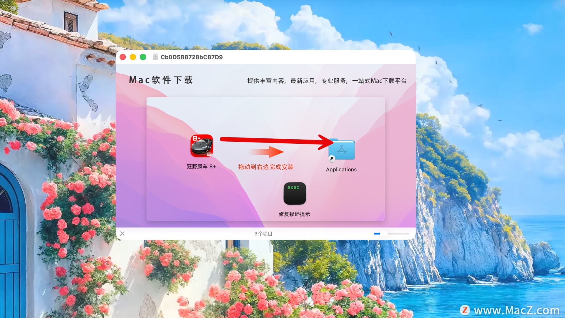 Asphalt8AIrborne破解版下载下载完成后,将左侧的游戏拖动到右侧的应用程序中。
