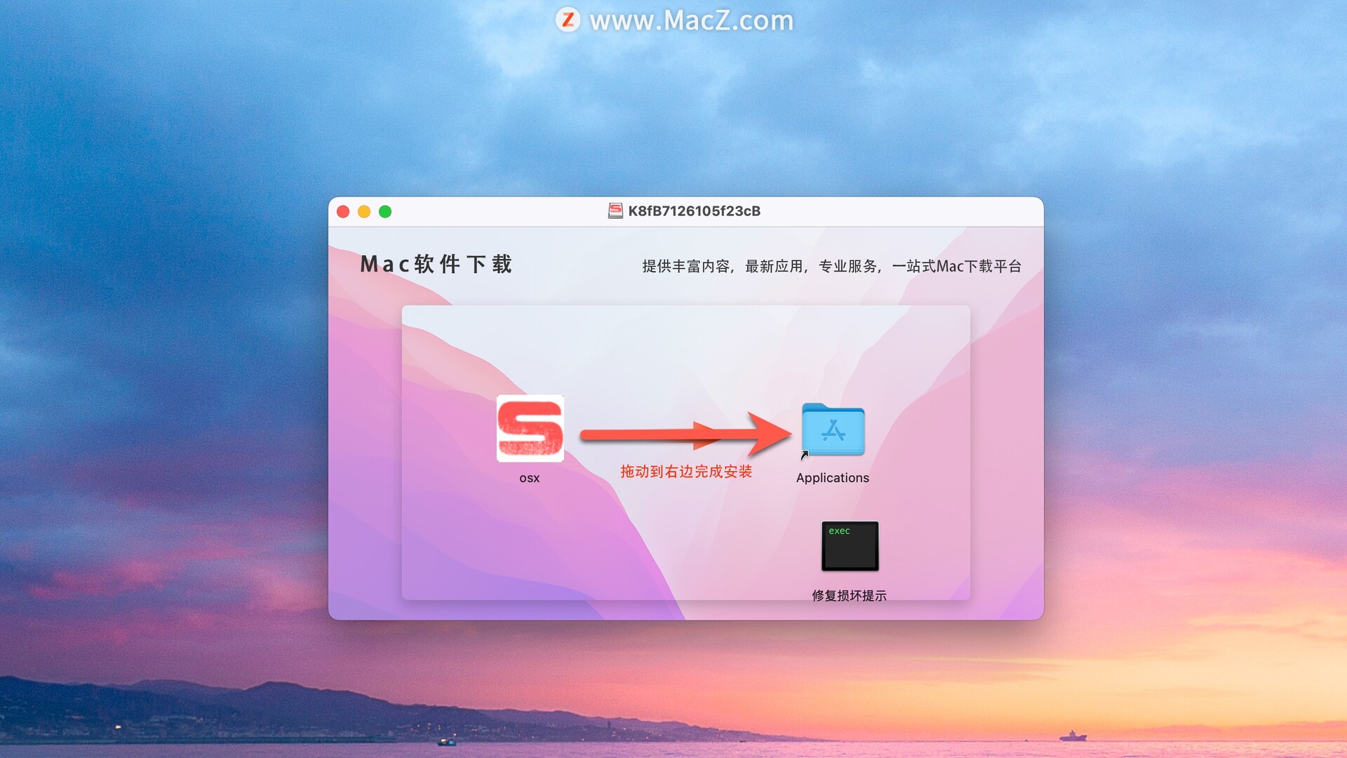 安装包下载完成后打开,将Skid Cities拖动到右侧文件夹中即可