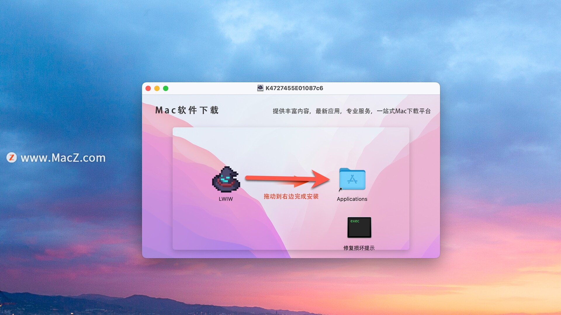 安装包下载完成后打开,将Little Witch in the Woods拖动到右侧文件夹中即可