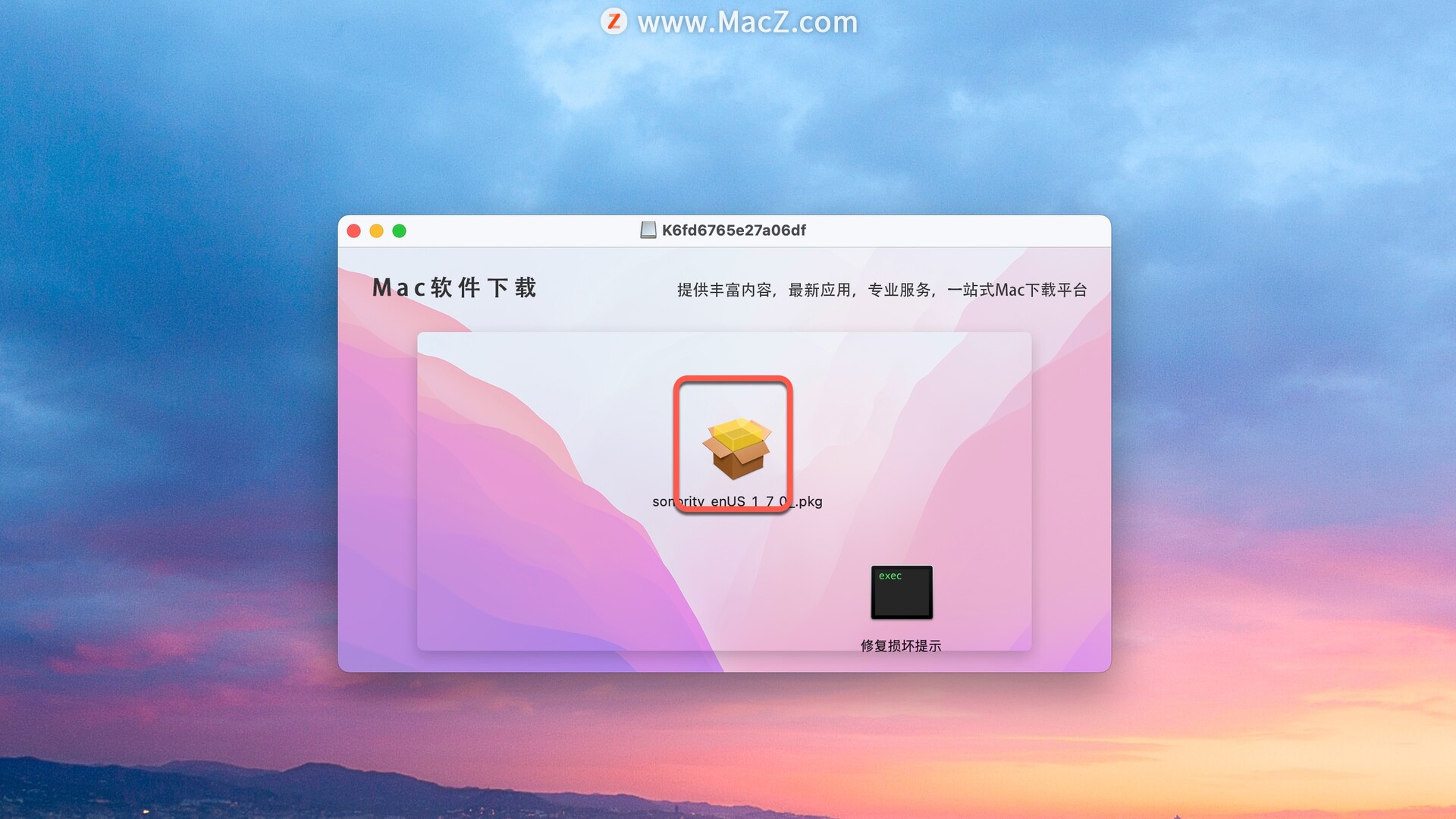 安装包下载完成后打开,双击pkg文件按照提示默认安装即可