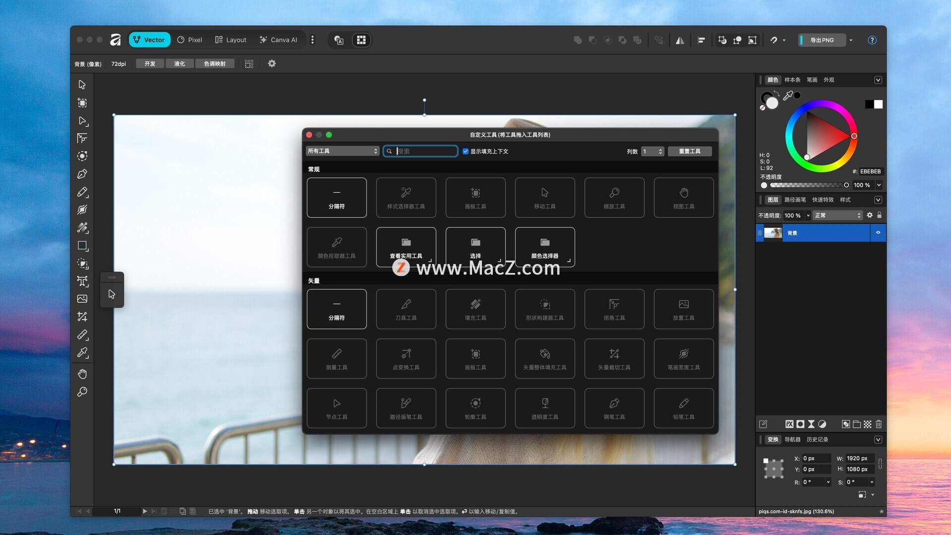 一款适应你的应用,而不是你去适应它。Affinity 内置了矢量、像素和布局工作室,但你并非被这些预设所束缚。你可以重新排列面板,混合搭配你最喜欢的工具,构建自定义工作室。你可以保存多个设置,一键切换,甚至可以与他人分享或下载他们的设置。这种自定义功能能够灵活地融入你的工作流程。