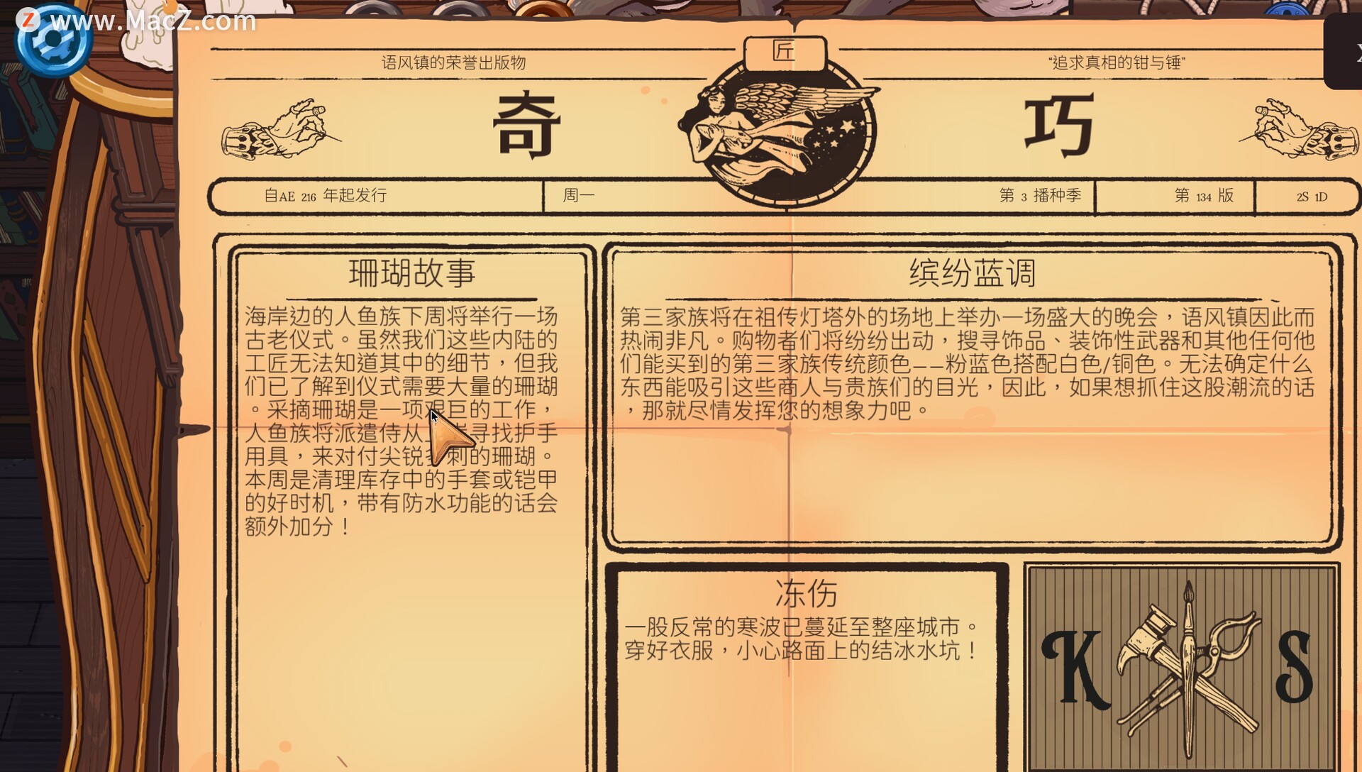 奇幻商人 CraftCraft: Fantasy Merchant Simulator for mac是一款剧情驱动的角色扮演商人模拟游戏,融合了制作元素!你可以为美人鱼打造一条美丽的项链,或者用龙血打造一把宝剑!化身蝴蝶、精灵或猫咪,在温馨的工坊里尽情挥洒创意,改变神秘港口小镇风语镇居民的生活。