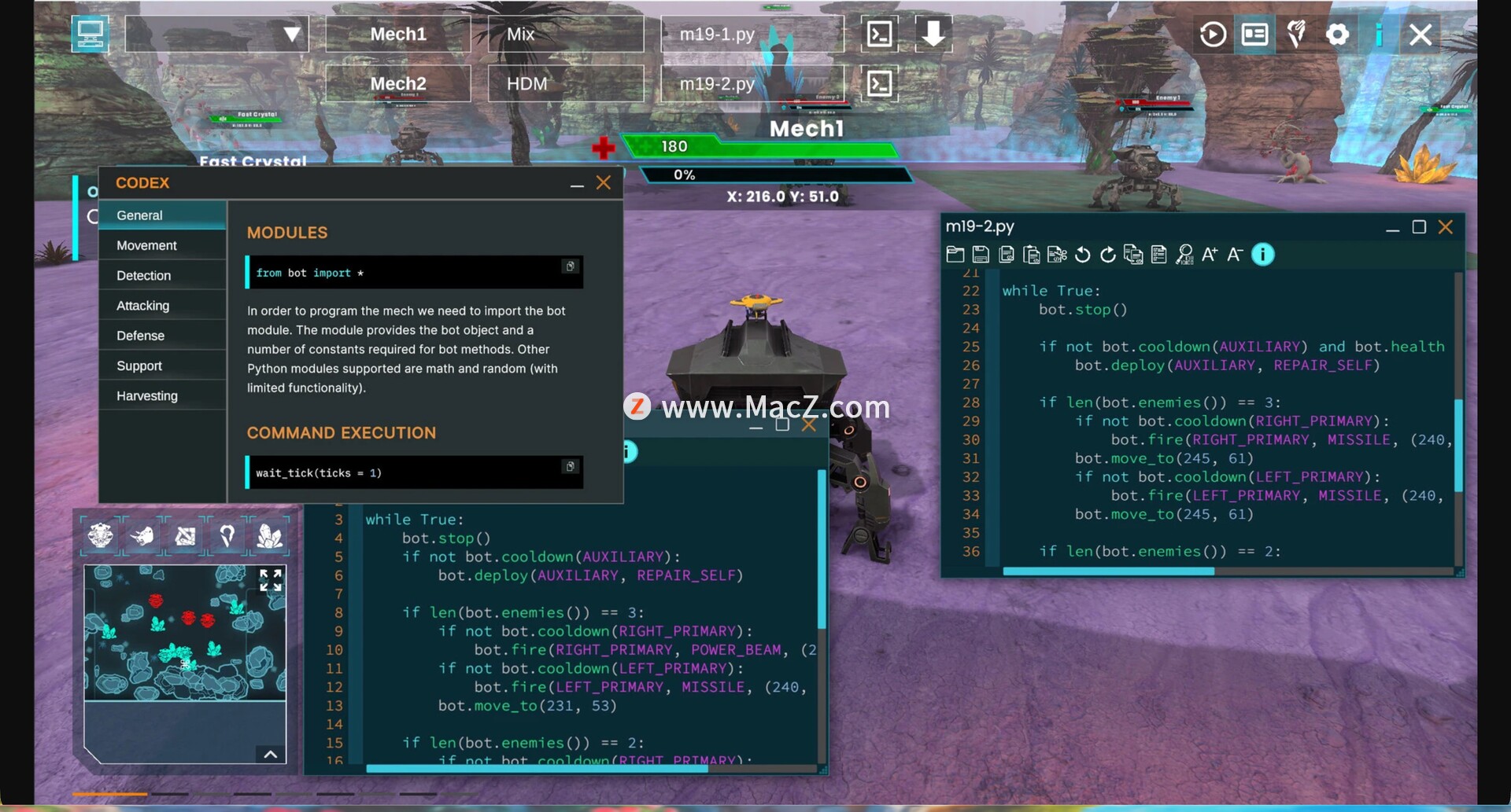 泰丰机器人决斗 Typhon: Bot vs Bot for mac 是一款科幻战术策略游戏,在《Typhon》中操控模块化机器人,通过Python脚本控制机器人,智取对手。在充满敌意的外星世界AEGIS IVb上,实时定制、调整和进化你的部队,主宰战场。