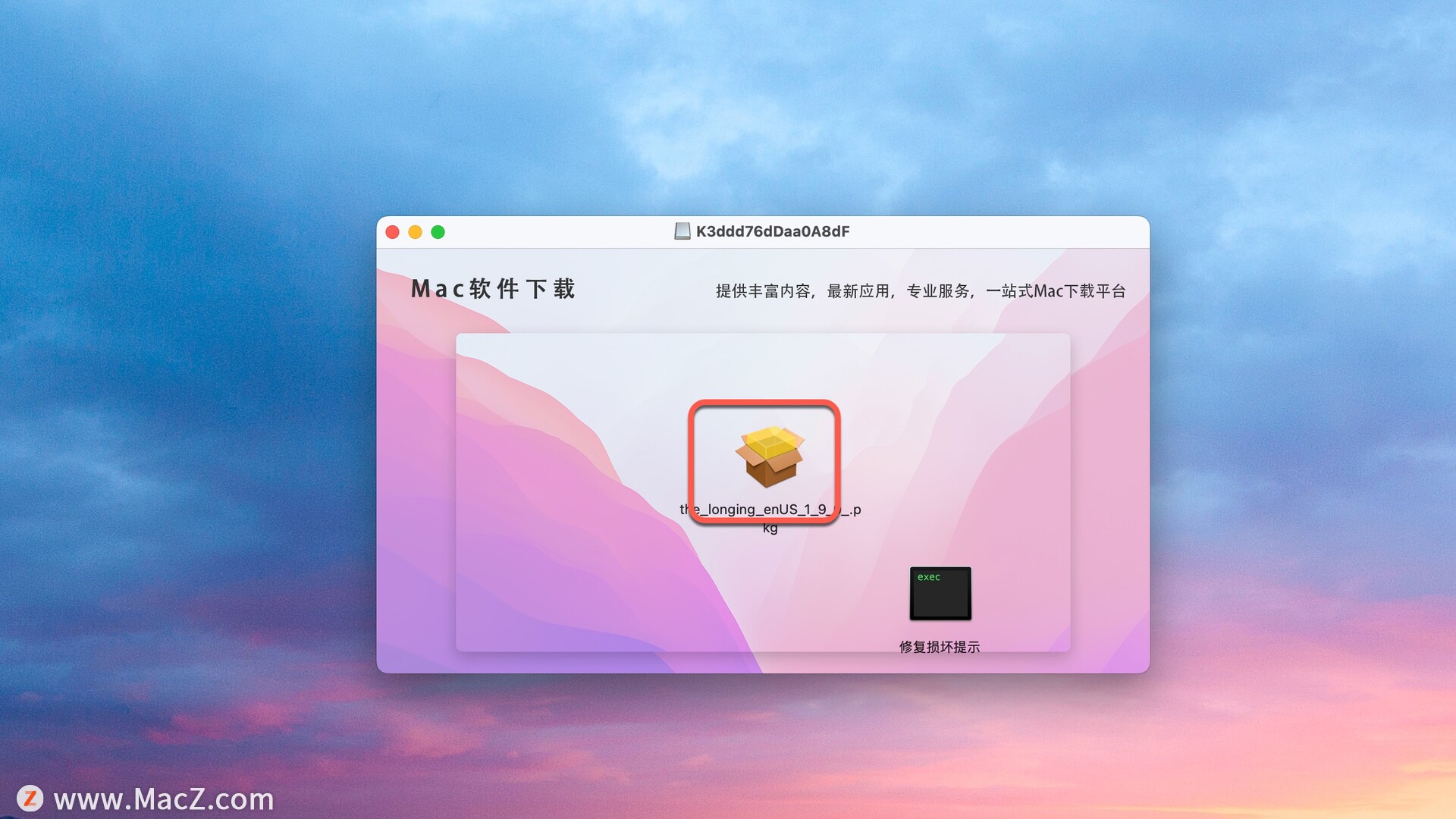 安装包下载完成后打开,双击pkg文件按照提示默认安装即可