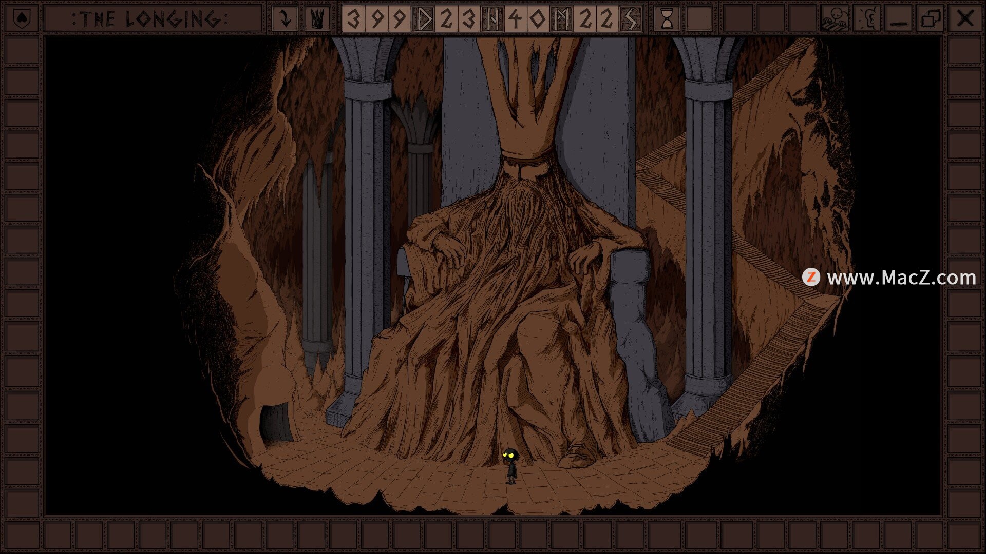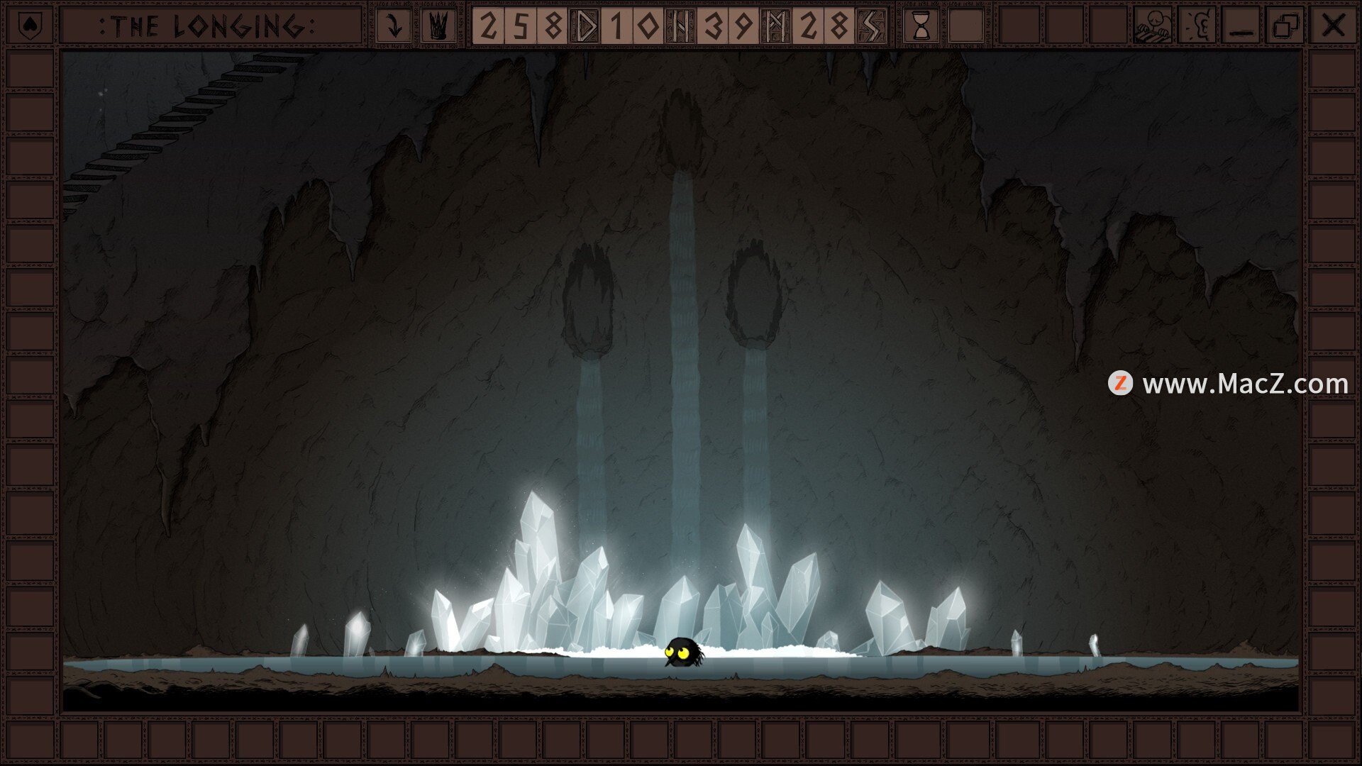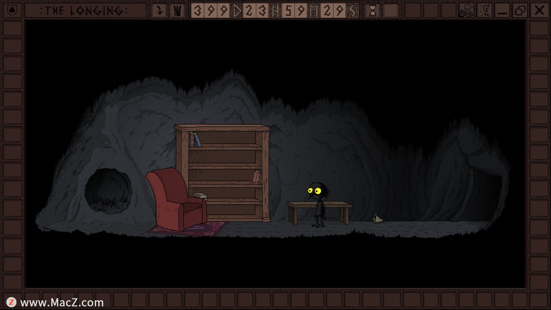 《渴望》是一款从一开始就独树一帜的游戏。主角是冥界之王的仆人。国王为了休养,已经进入了400天的冬眠状态,而你必须在空荡荡的宫殿里等待他醒来。游戏启动后,计时器便会立即开始,即使你关闭游戏或关闭电脑,计时器也会继续运行。如何度过这400天完全取决于你。你可以探索洞穴,寻找新的饰品来装饰你的房间,或者只是在宽敞但陈设简陋的通道中消磨时间。