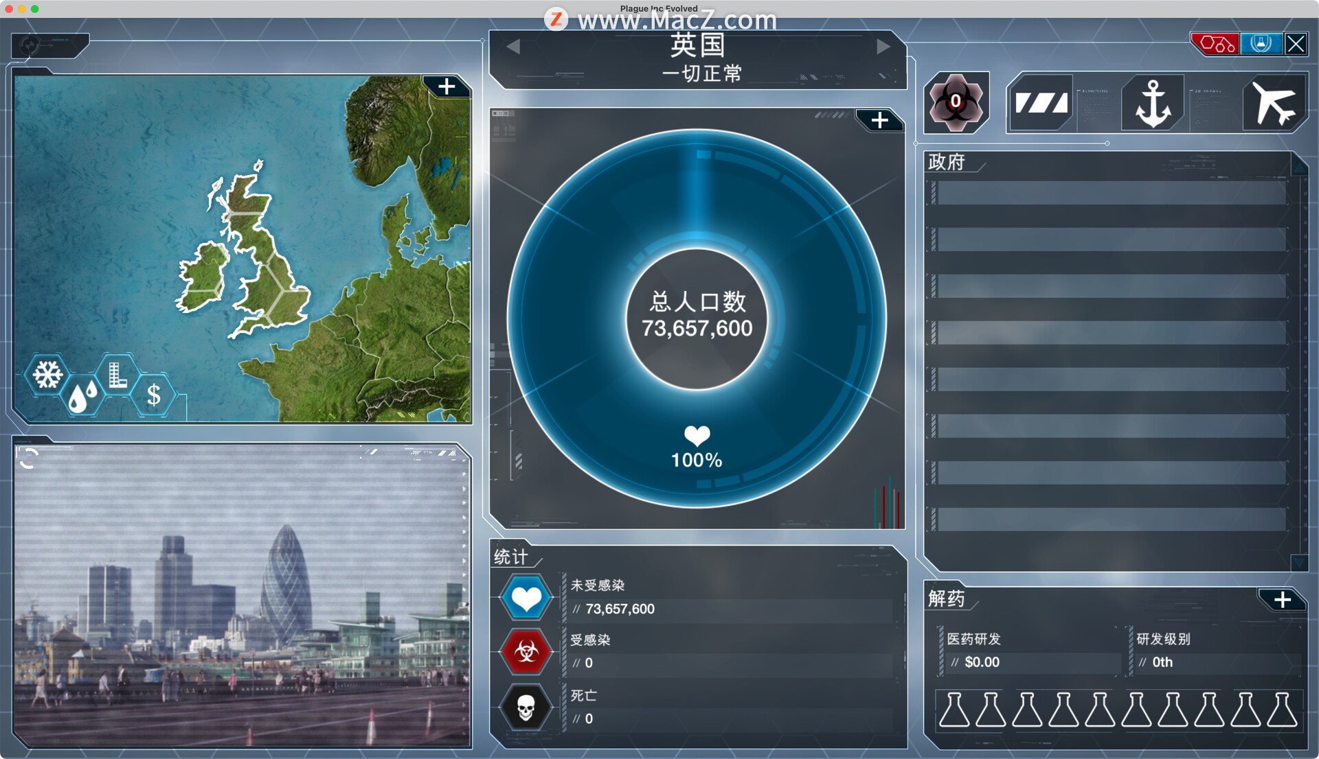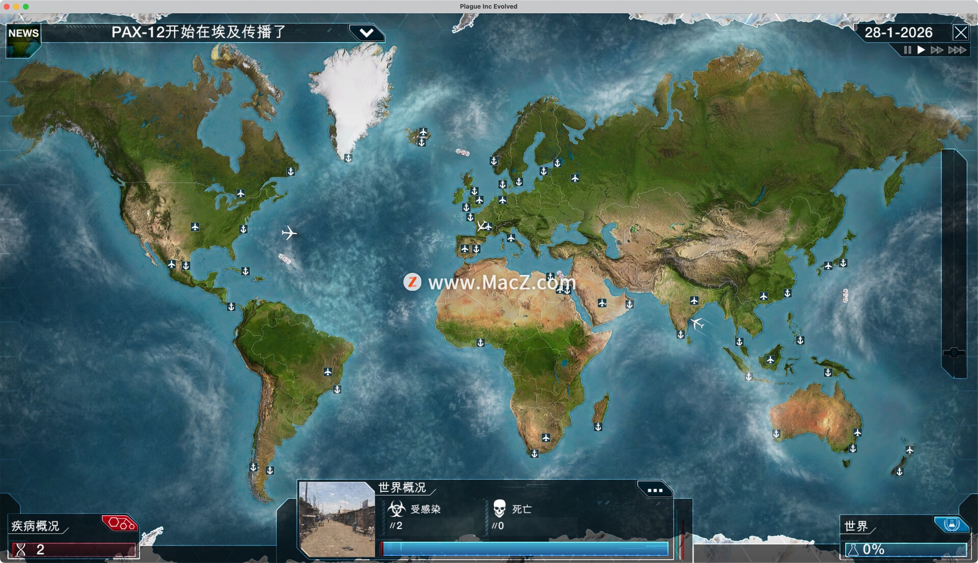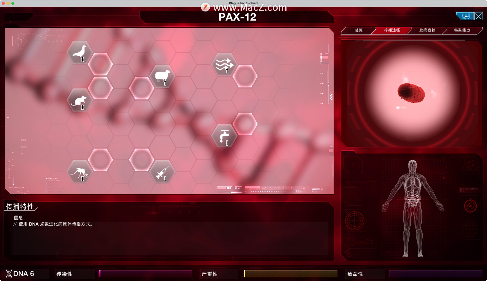 《瘟疫公司:进化版》是一款前所未有的策略游戏,它完美融合了令人毛骨悚然的真实模拟元素。一种病原体刚刚感染了“零号病人”,你必须通过传播这种致命的全球传染病来毁灭全人类,而这种传染病会适应人类所能采取的一切手段。