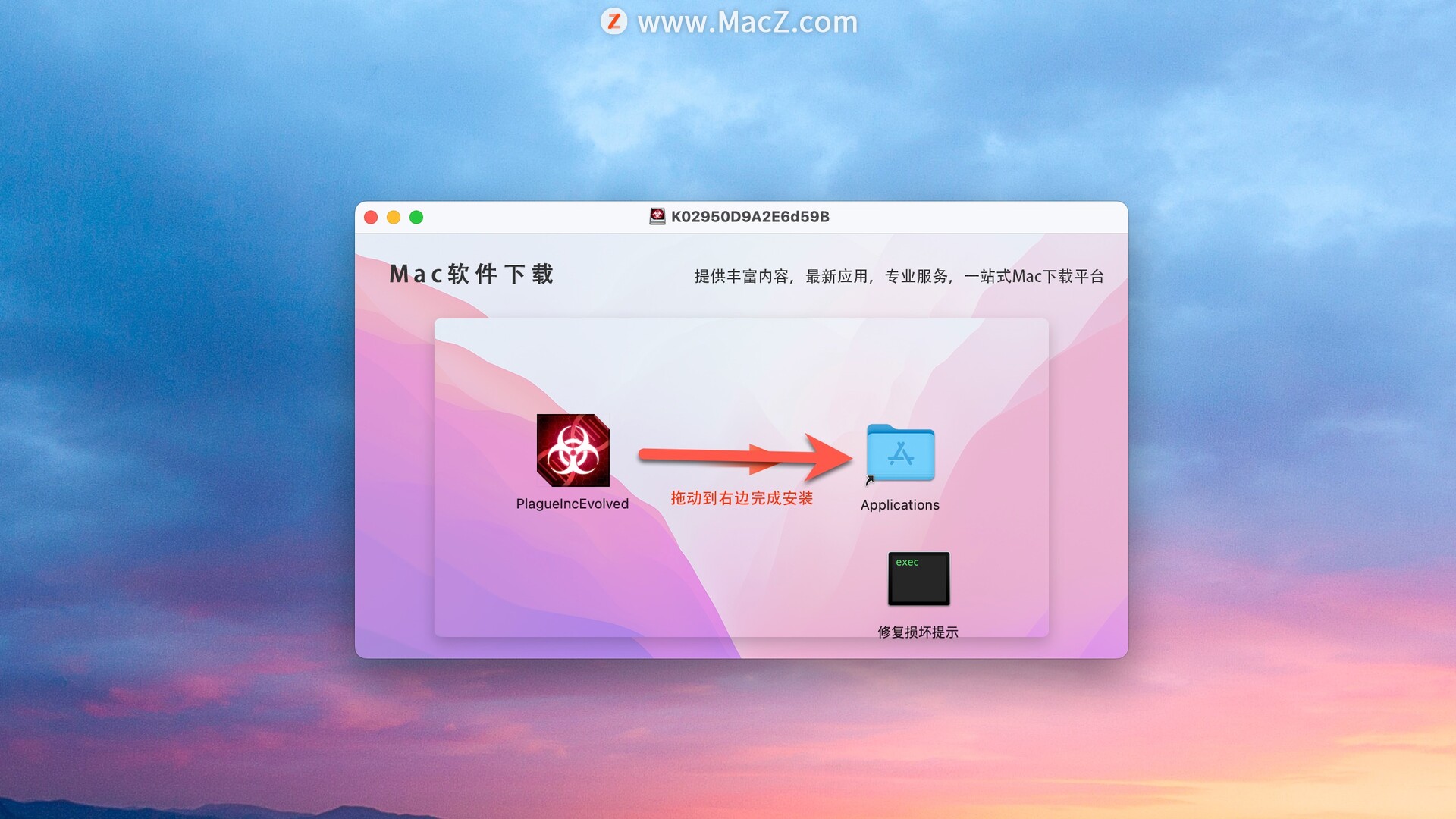安装包下载完成后打开,将拖动到右侧文件夹中即可