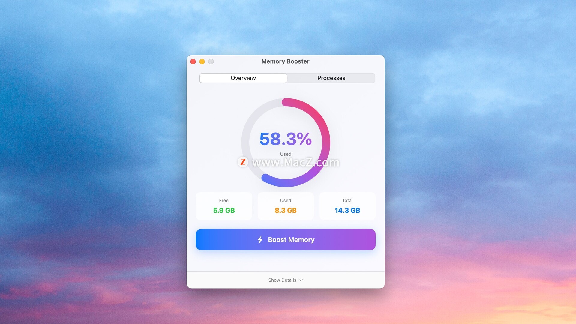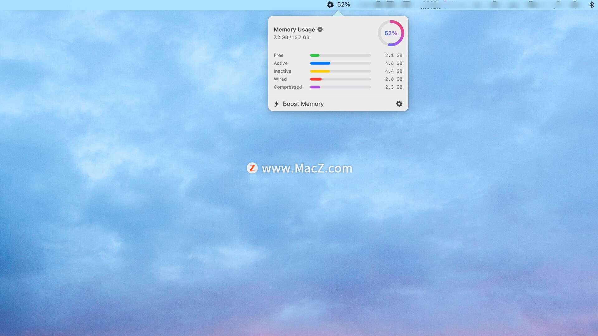 直接从菜单栏监控内存使用情况。无需打开应用,即可快速访问性能提升、详细统计信息和进程管理功能。