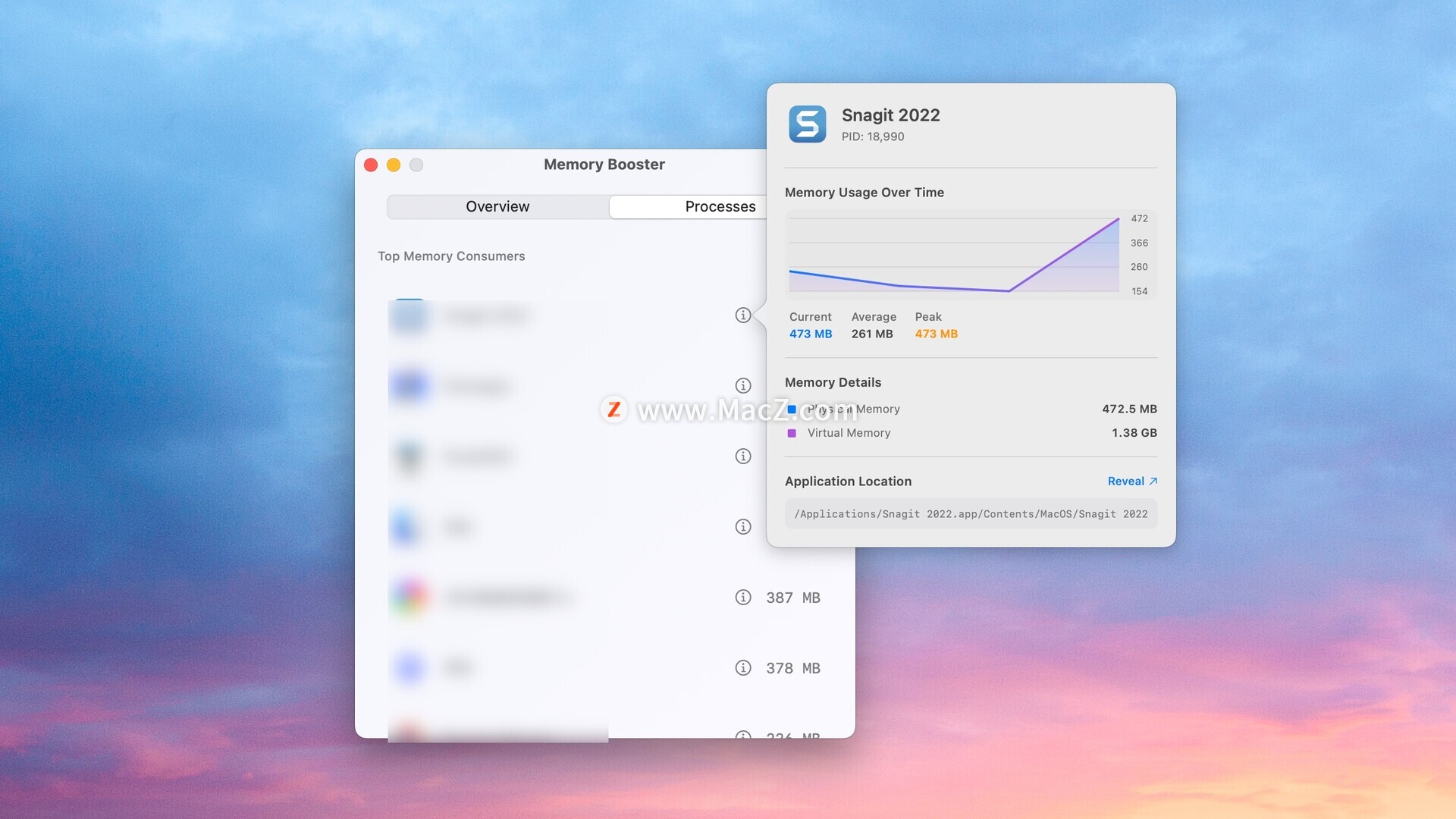 跟踪每个进程的物理内存、虚拟内存和压缩内存。导出数据,在 Finder 中显示应用程序,并像专业人士一样分析内存模式。