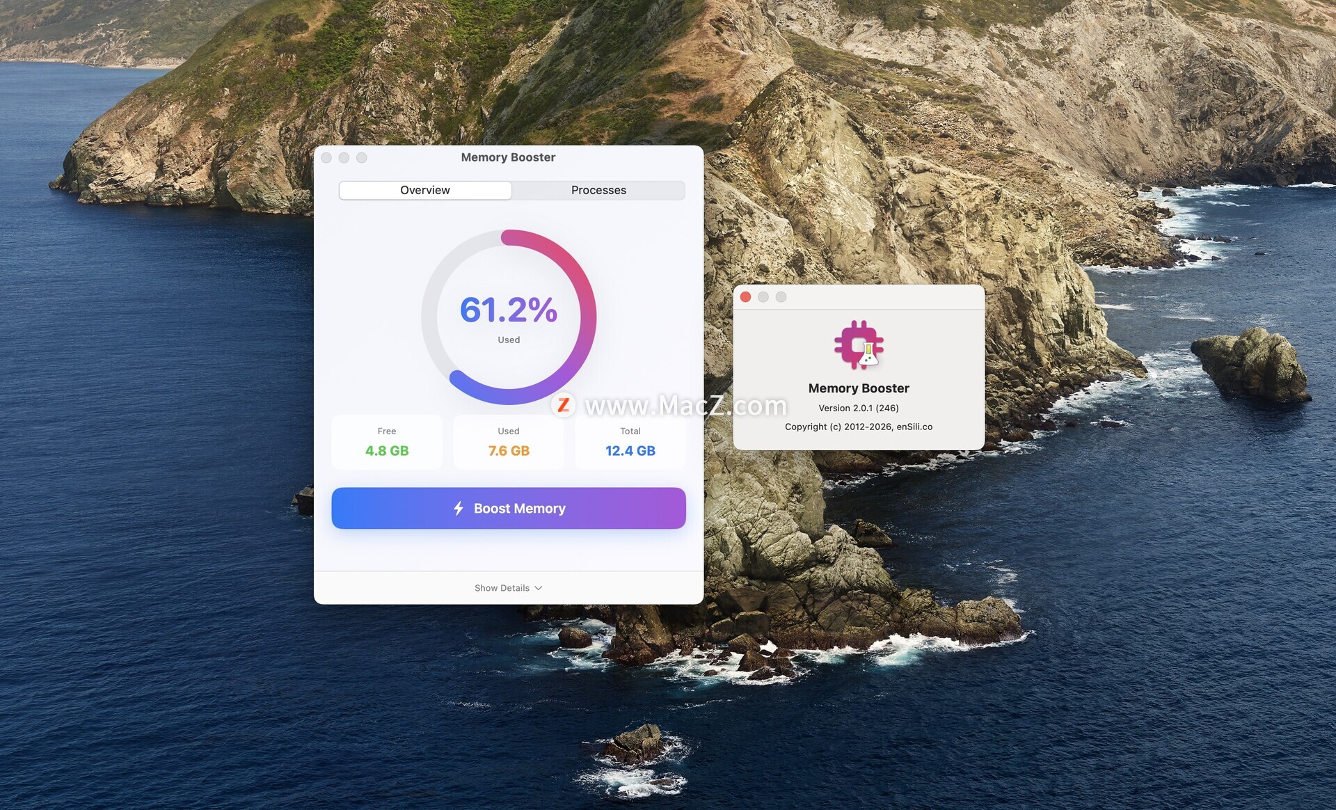 Memory Booster for Mac 是一款专为 macOS 用户设计的内存优化工具,旨在帮助提升系统性能,特别是在多个应用程序和任务同时运行时。它通过释放系统内存、清理不必要的缓存和进程,帮助 Mac 设备保持流畅运行。