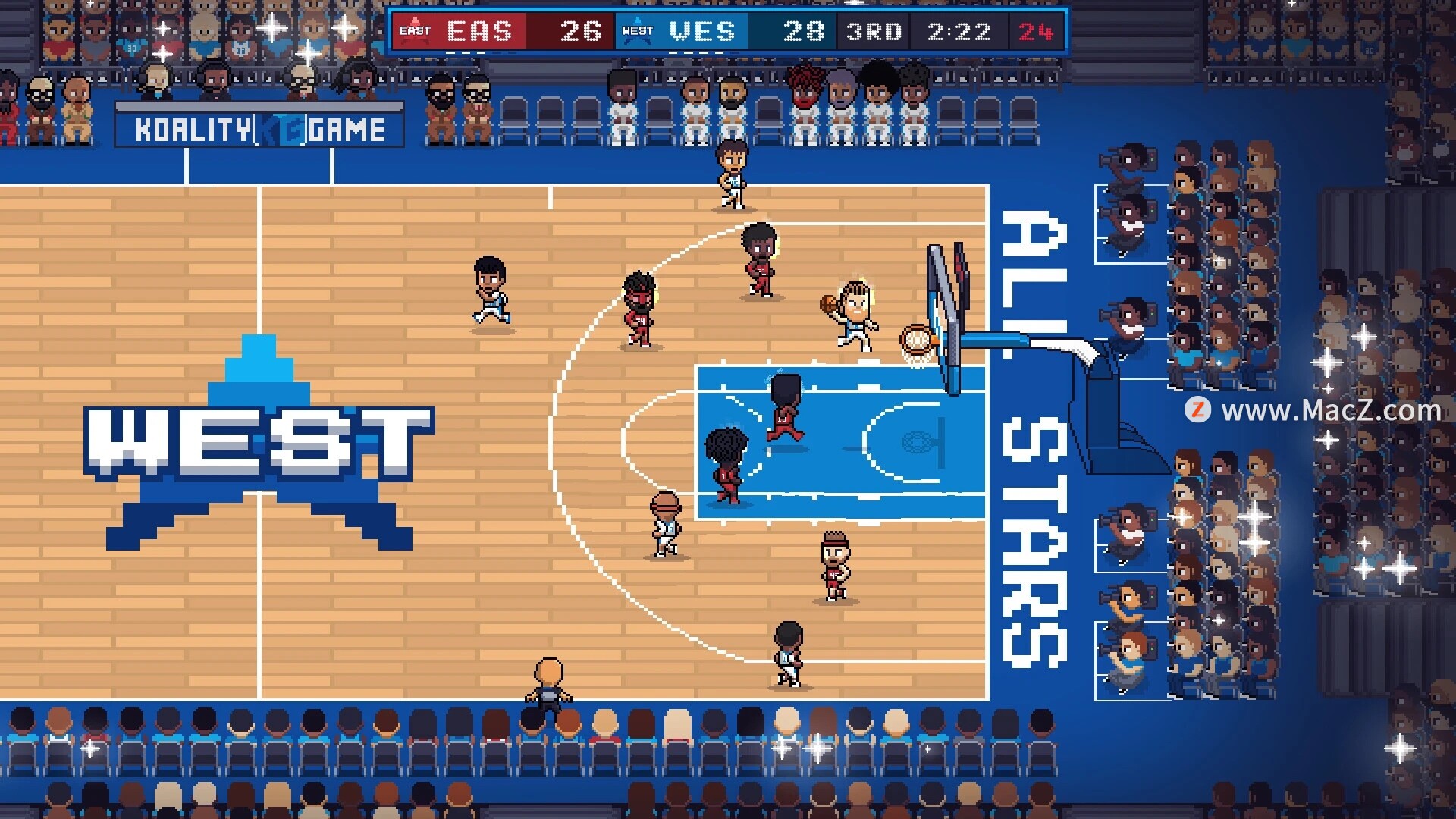 《篮球乐园》是一款受经典复古游戏启发而创作的2D篮球模拟游戏。你可以亲自上阵、观看比赛或模拟每一场比赛,沉浸在引人入胜的篮球世界中,体验大学联赛和职业联赛无缝衔接的赛季模式。