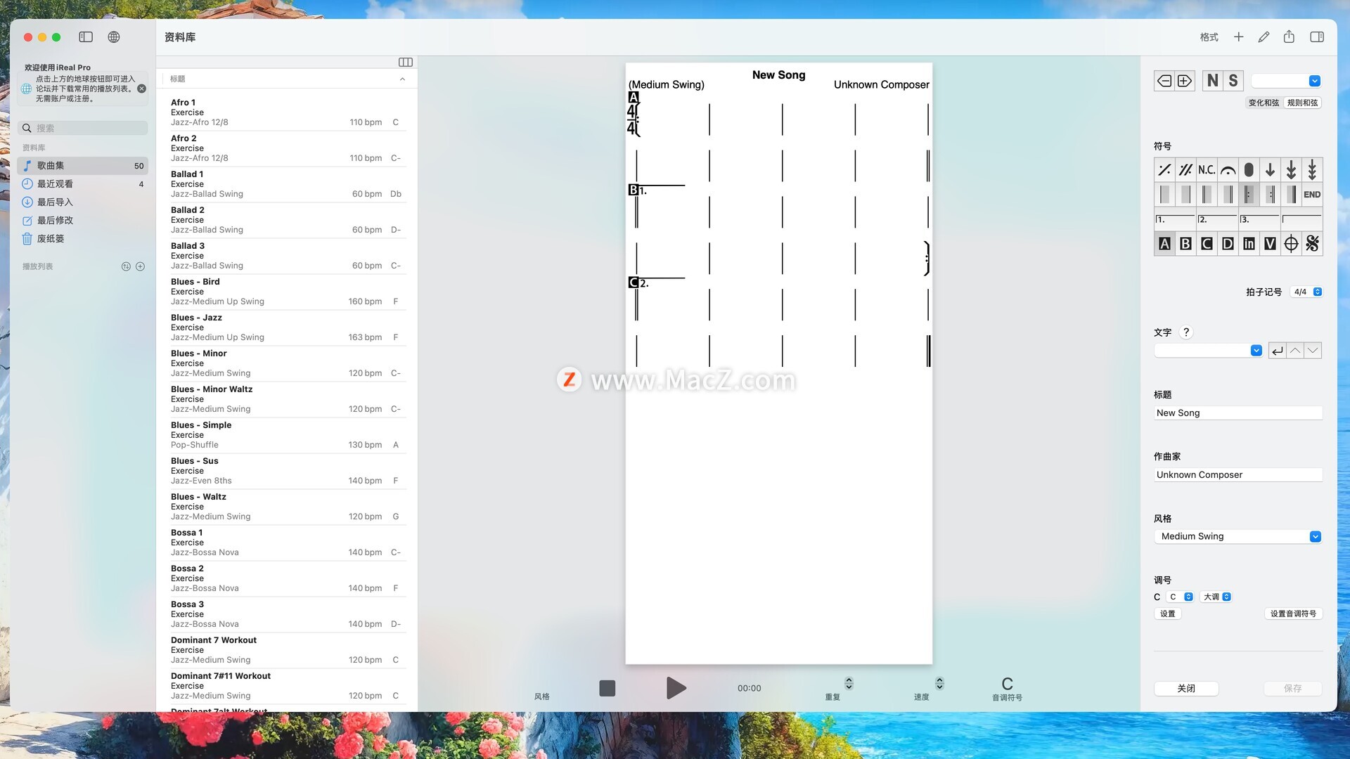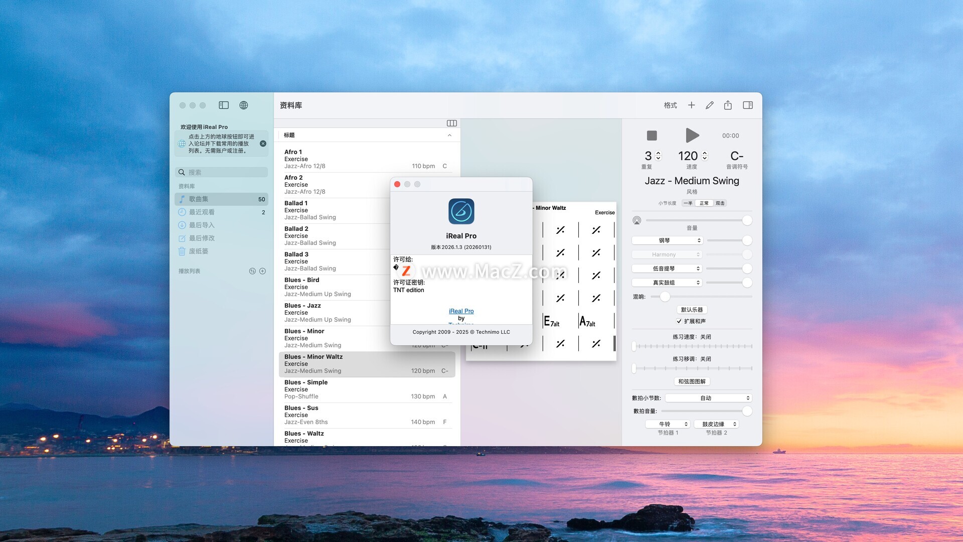 iReal Pro for mac 是一款非常受欢迎的音乐伴奏软件,被誉为音乐人的“万能伴奏乐队”。它广泛应用于练习、学习、创作和表演中,尤其深受爵士乐手喜爱,但也适用于各种流行音乐风格。测试环境:MacOS 26.2