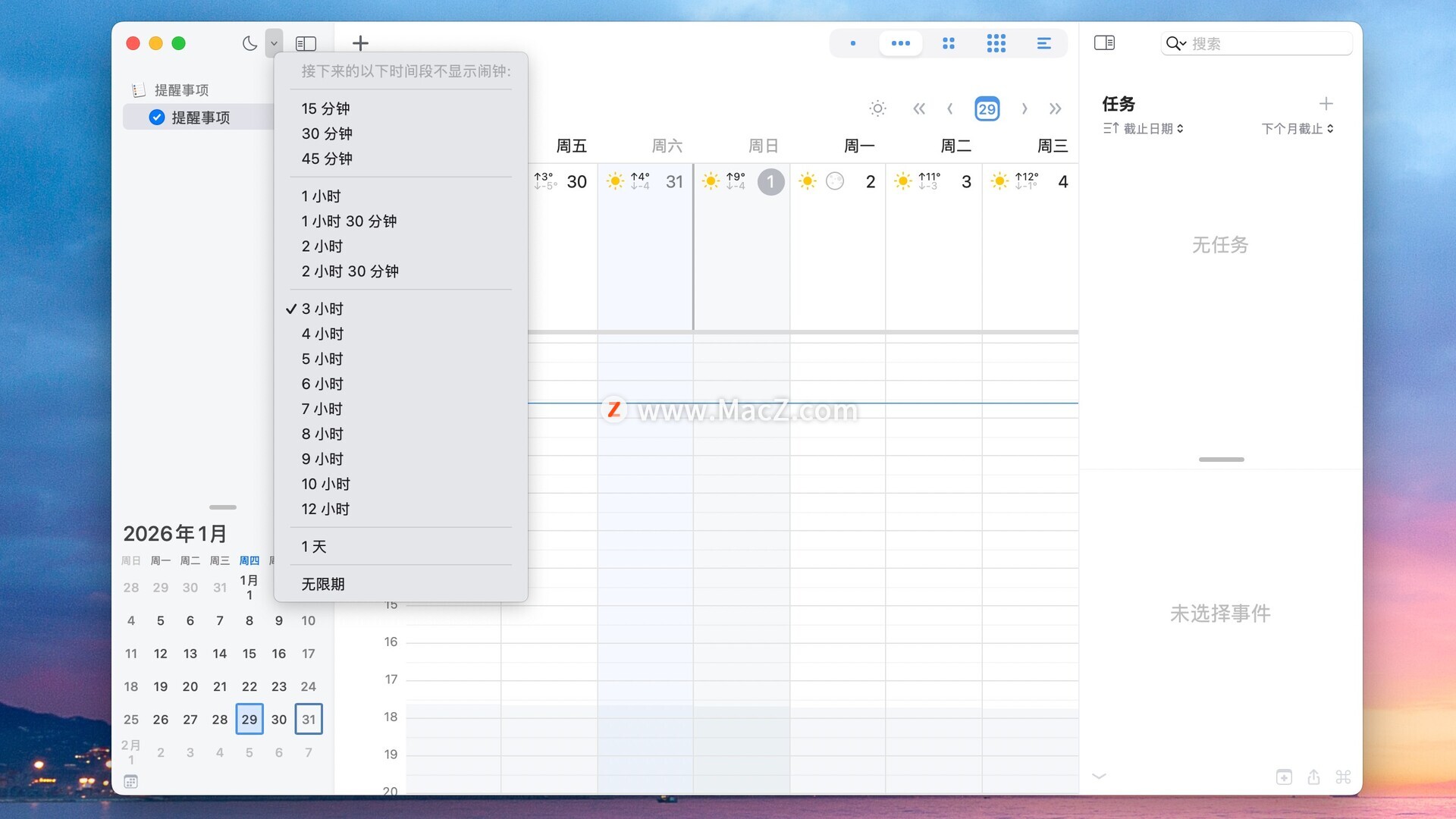 创建适合您的自定义提醒,从弹出通知到语音提示,应有尽有。您可以根据需要关闭、暂停和重复提醒;即使 BusyCal 应用窗口关闭,提醒仍然有效。这是确保您不会错过任何重要事项的绝佳方式,周密的计划必将带来丰厚的回报。
