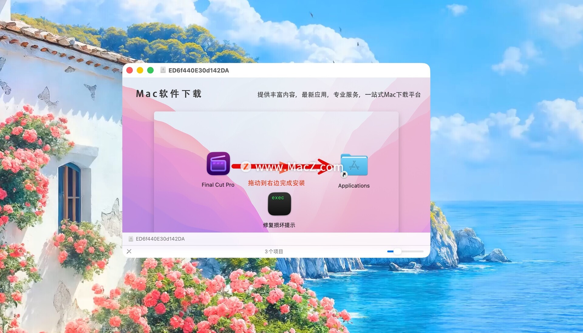 将左侧的 Final Cut Pro 拖动到右侧的应用程序中即可,如图