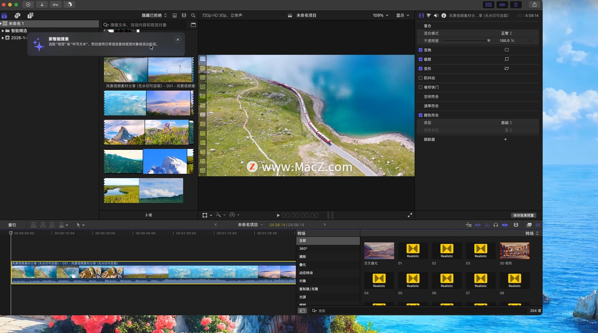 - Final Cut Pro 带来强大的 AI 功能,简化复杂任务、优化视觉效果,让视频创作脱胎换骨,从初剪到成片,专业品质大作一气呵成。