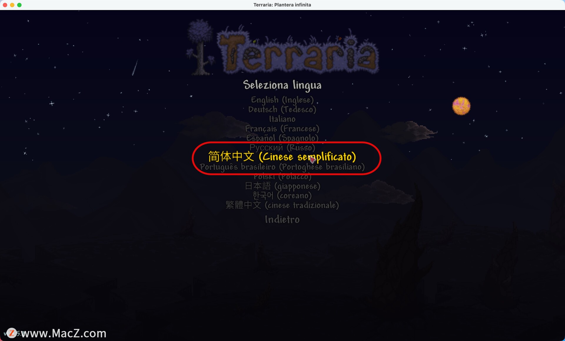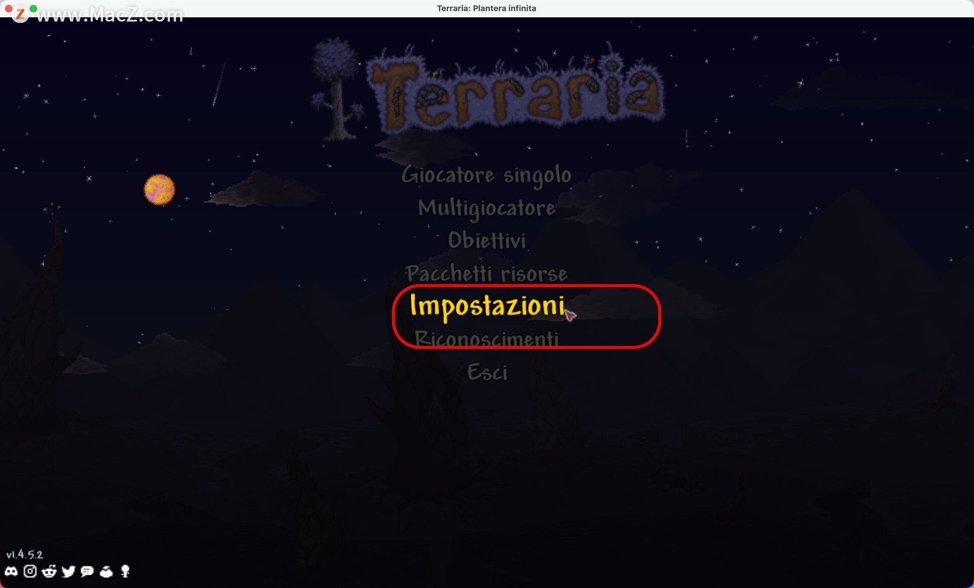 打开游戏后,在主界面上选择Impostazioni