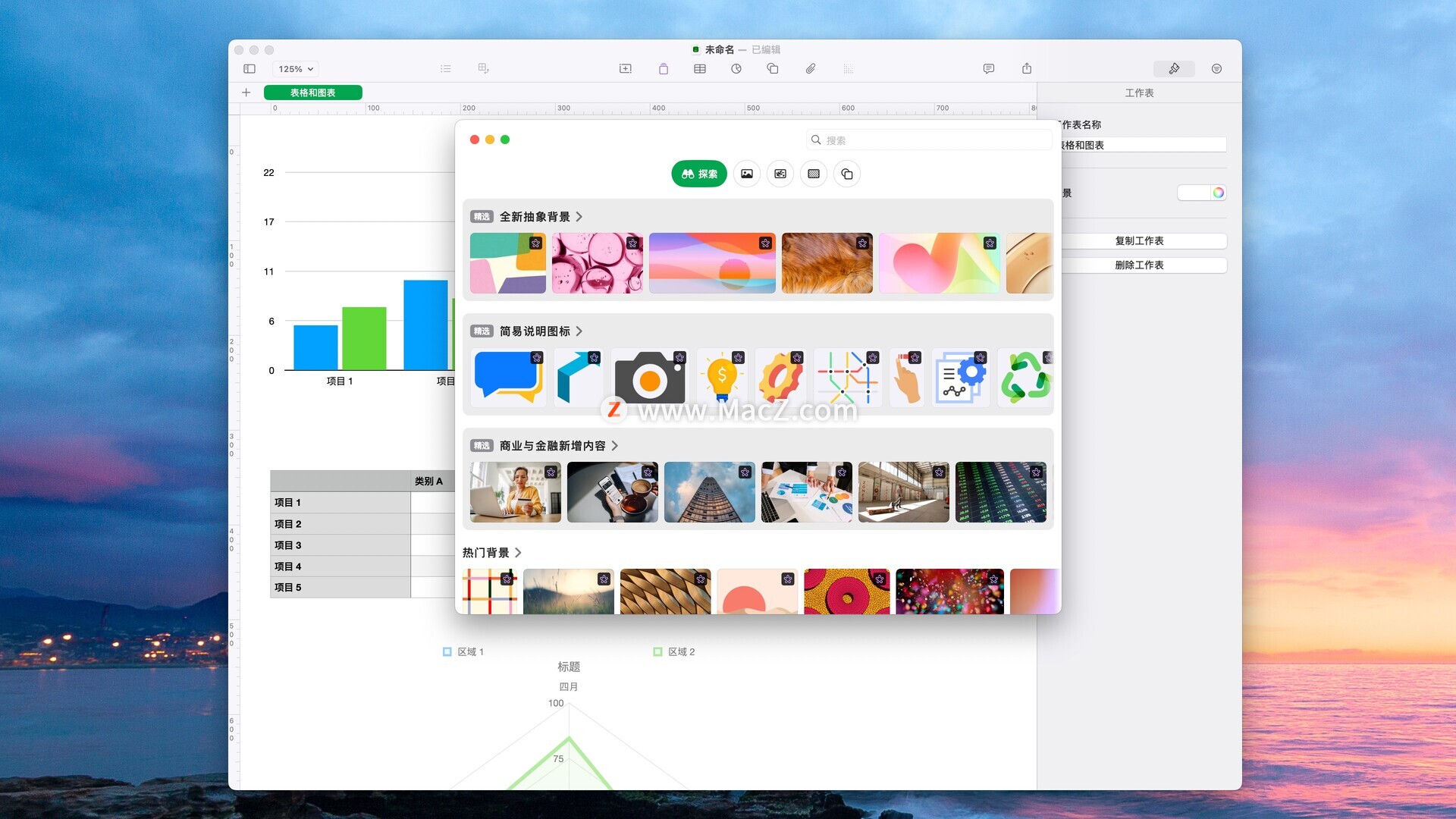 Numbers 表格用空白画布代替无数的条条框框,让你从一开始,就能在画布上随意移动各种内容,随心所欲地组织数据。使用 Apple 设计的模板,轻松创建从家庭预算到发票等各种类型的电子表格。在灵活的画布上任意位置添加表格、图表、文本和图像。使用交互式图表为数据添加动画效果,使用数据透视表发现规律,并使用数百种强大的函数。