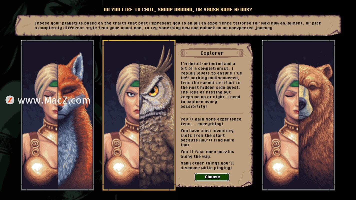 - 探险家: 目标明确,获得更多战利品和物品,擅长解谜,行动谨慎隐秘。