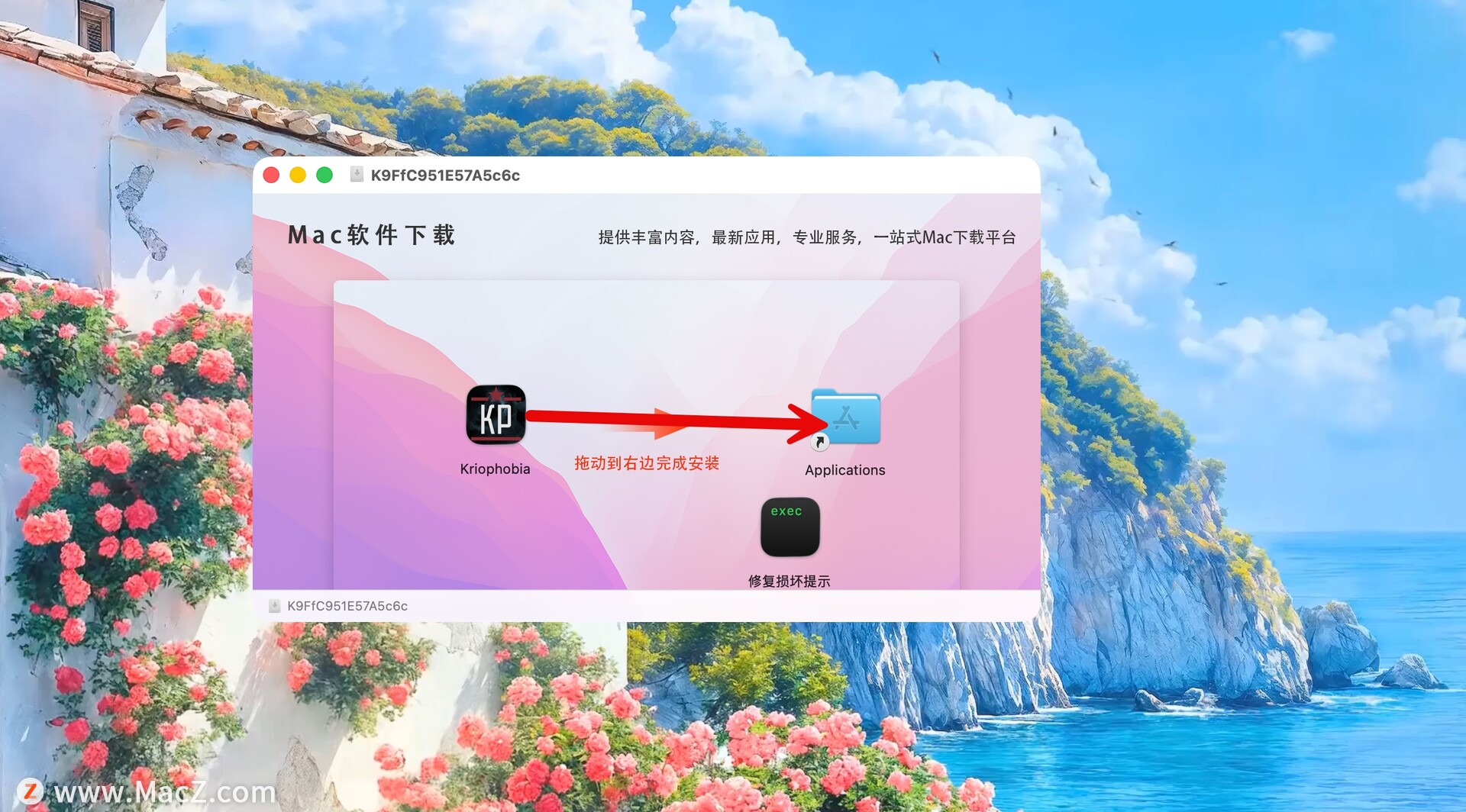 将左侧的Kriophobia拖动到右侧的应用程序中即可,如图