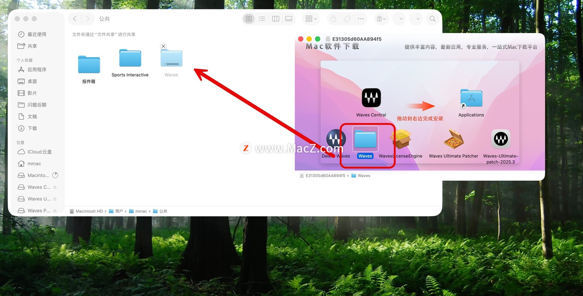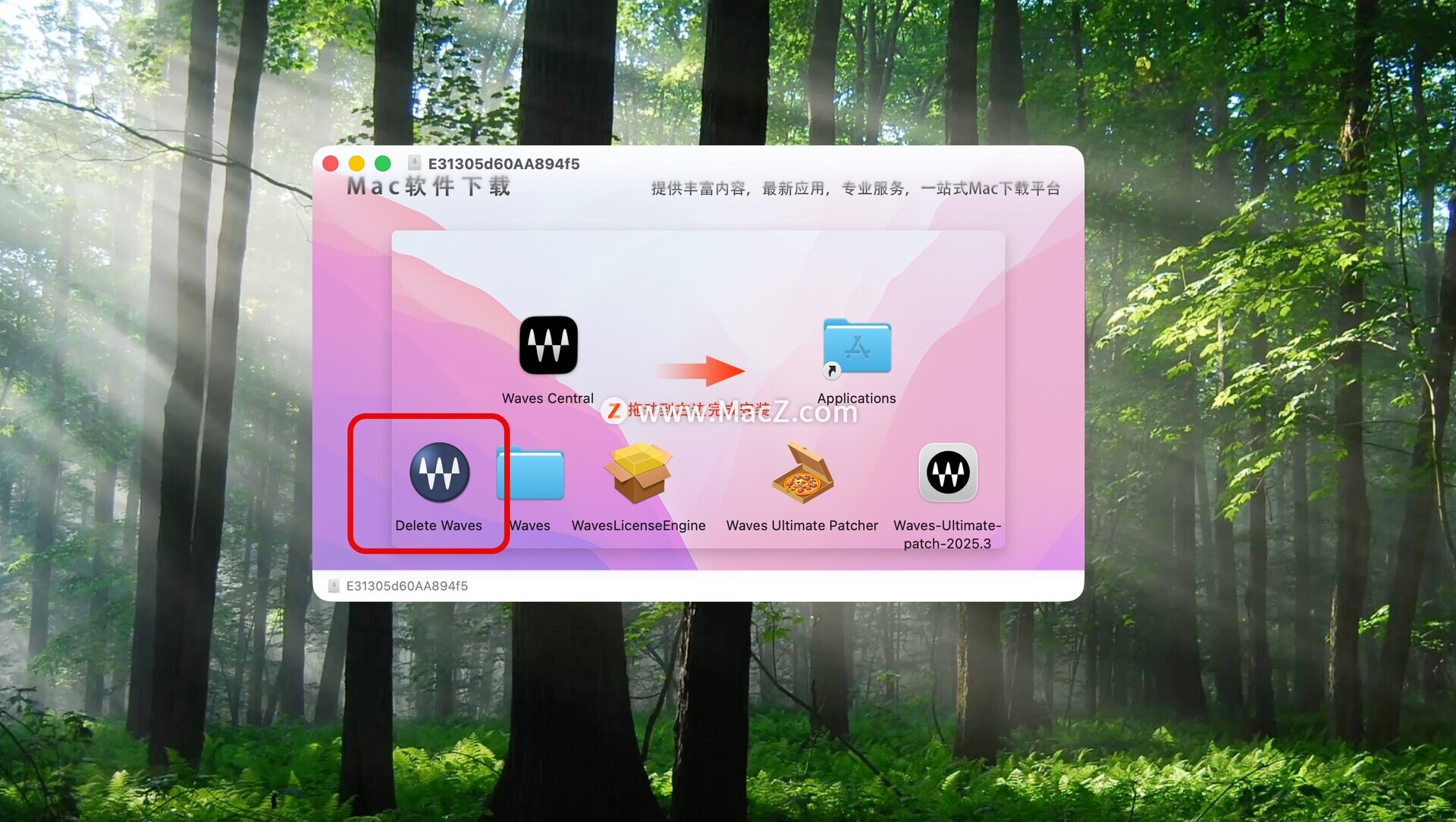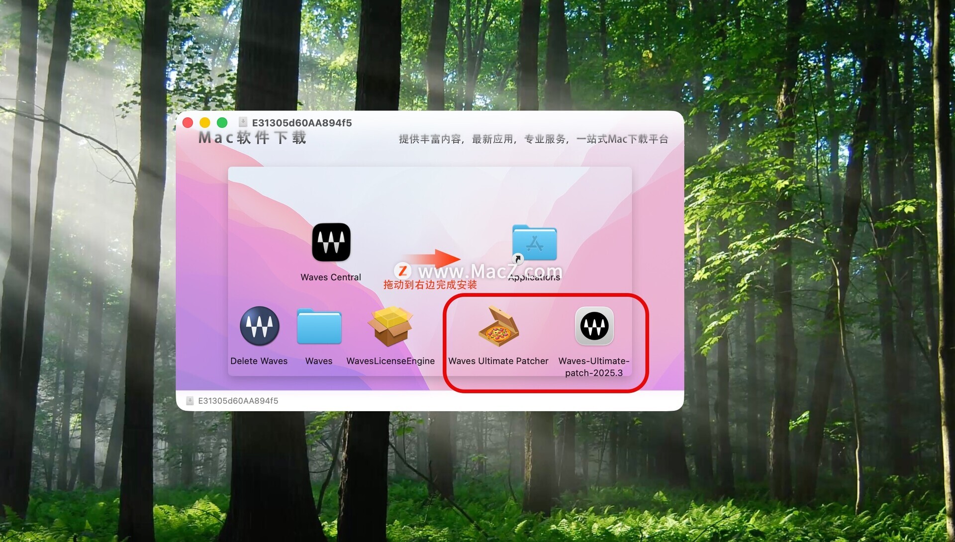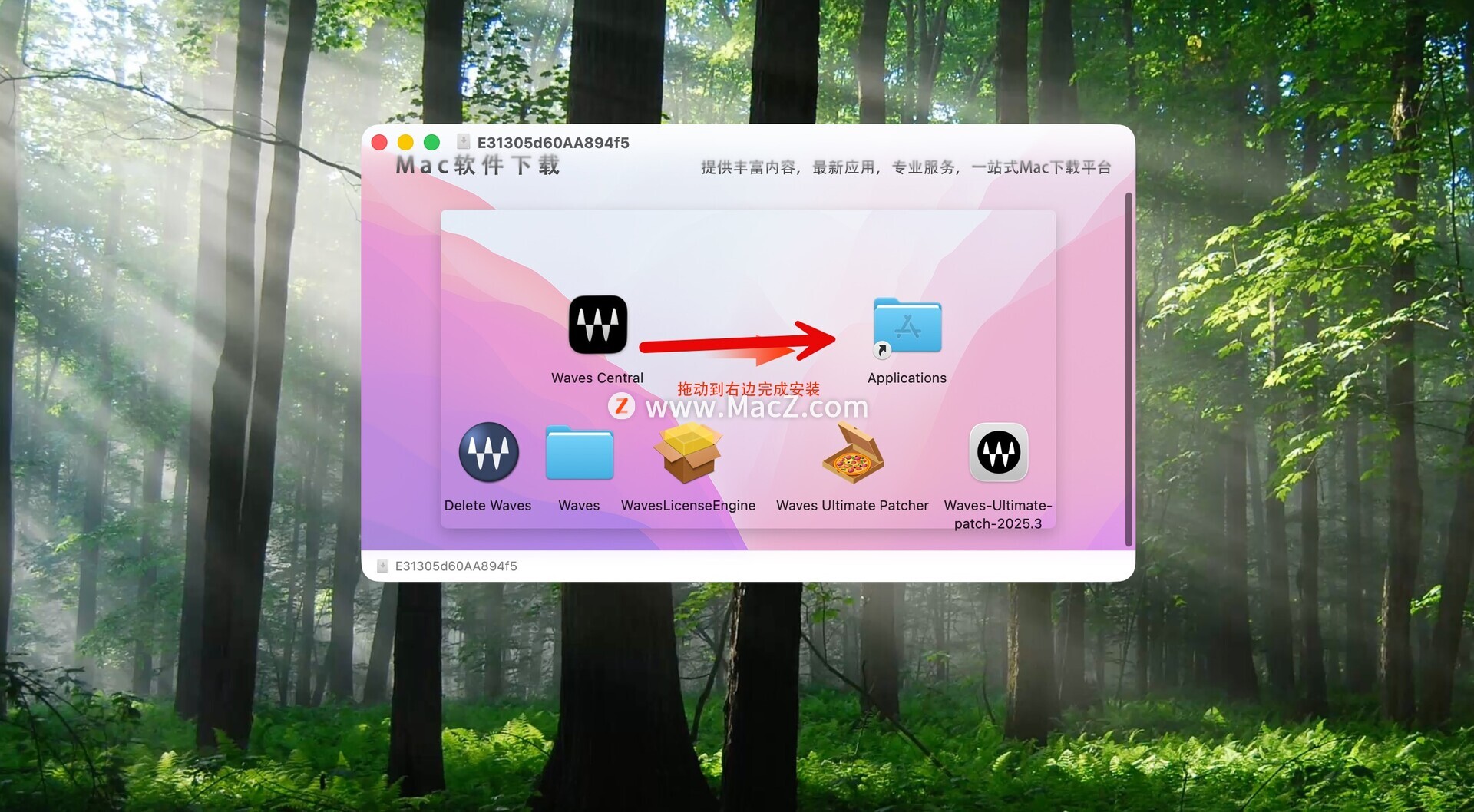 下载完成后打开镜像包,将左侧Waves Central拖入右侧应用程序中进行安装