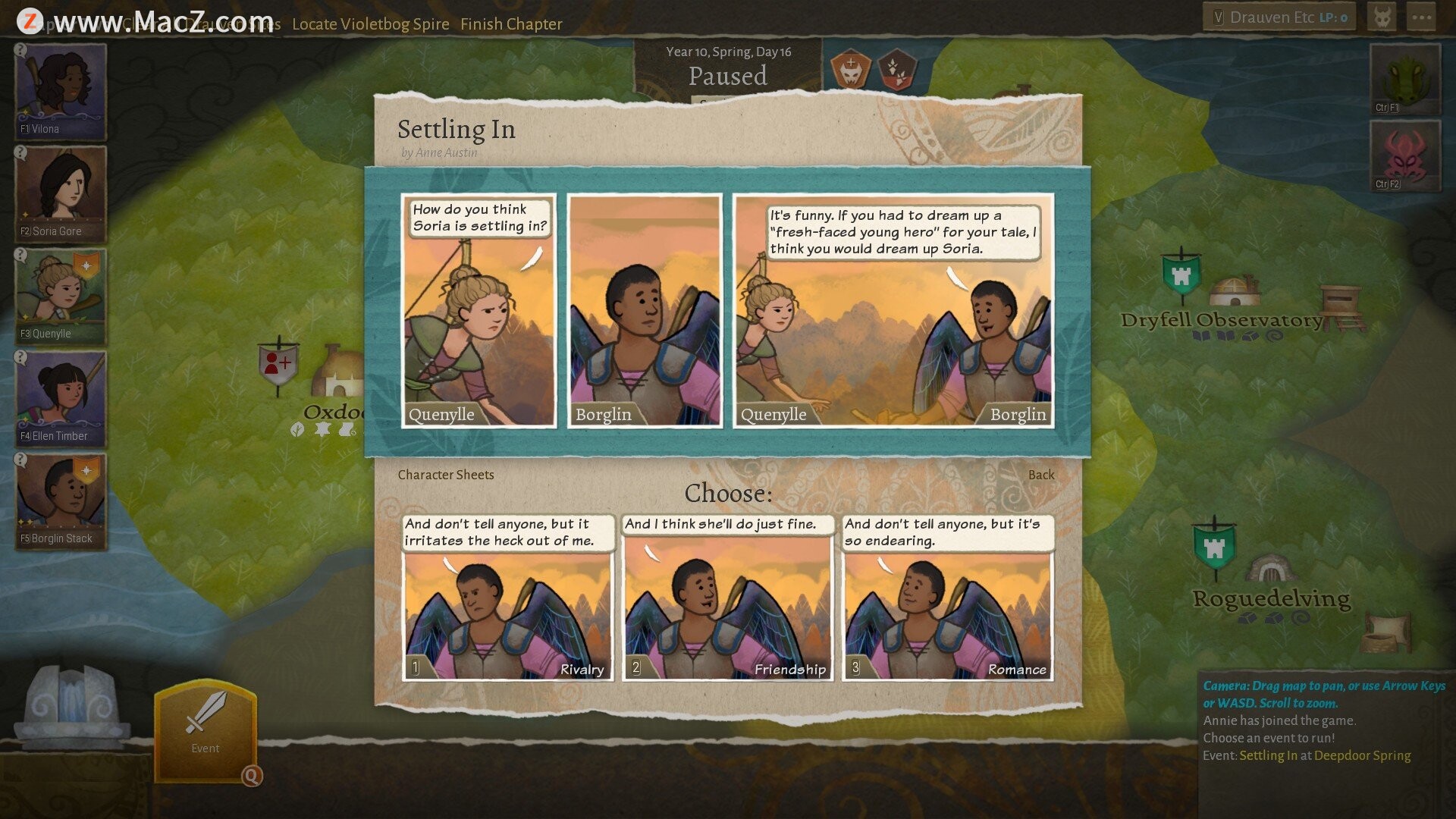 战斗发生在互动式竞技场中,玩家将与各种各样的奇幻生物展开激战。游戏玩法灵感源自桌游,并与每位队员的个性特征紧密相连。角色会成长、变身、坠入爱河,并做出艰难的抉择。根据他们选择的道路,角色之间会发展出不同的关系:友谊、爱慕或敌意。每个角色都有其独特的成长历程和背景故事。