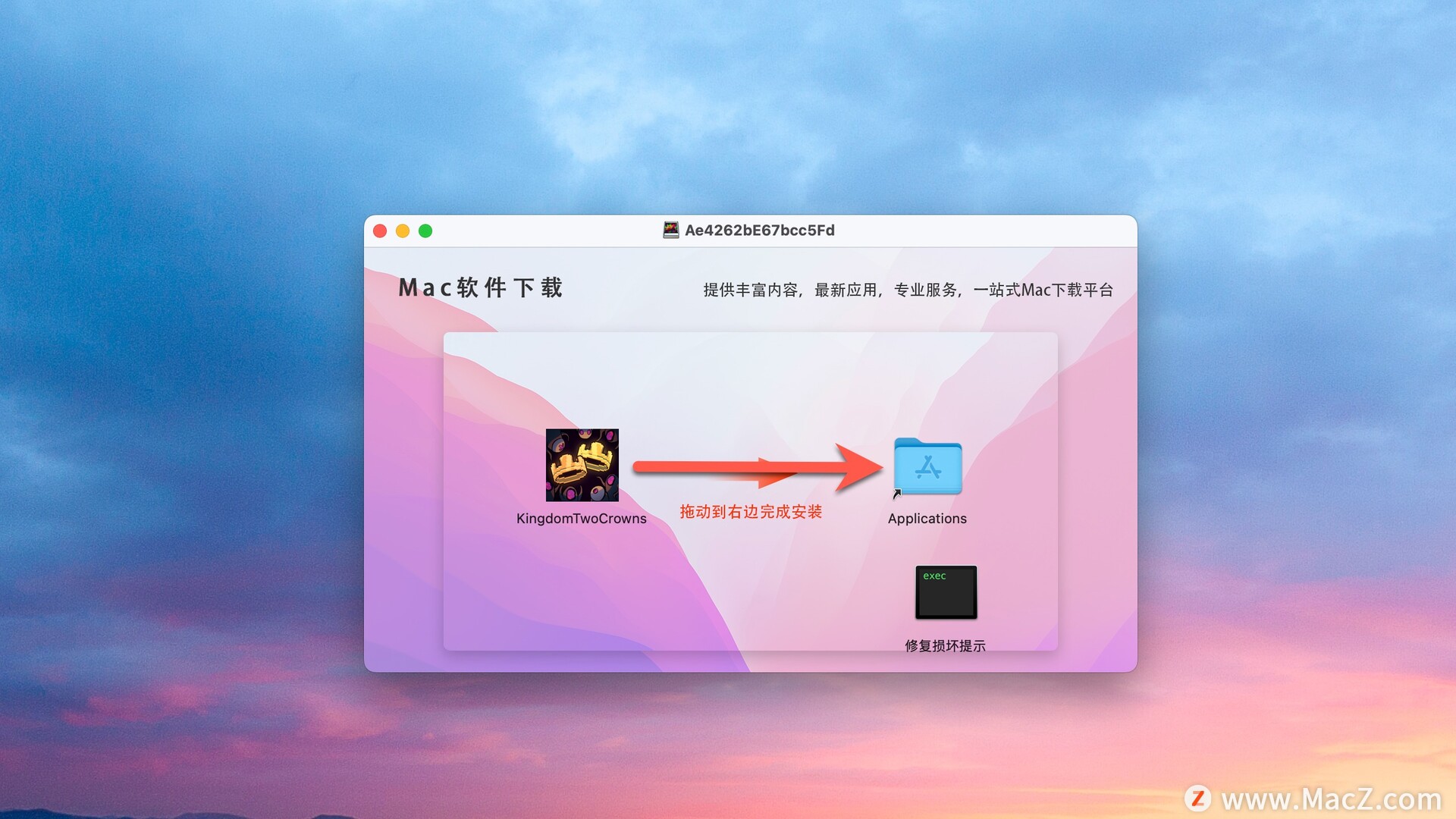 安装包下载完成后打开,将左侧文件拖动到右侧文件夹即可