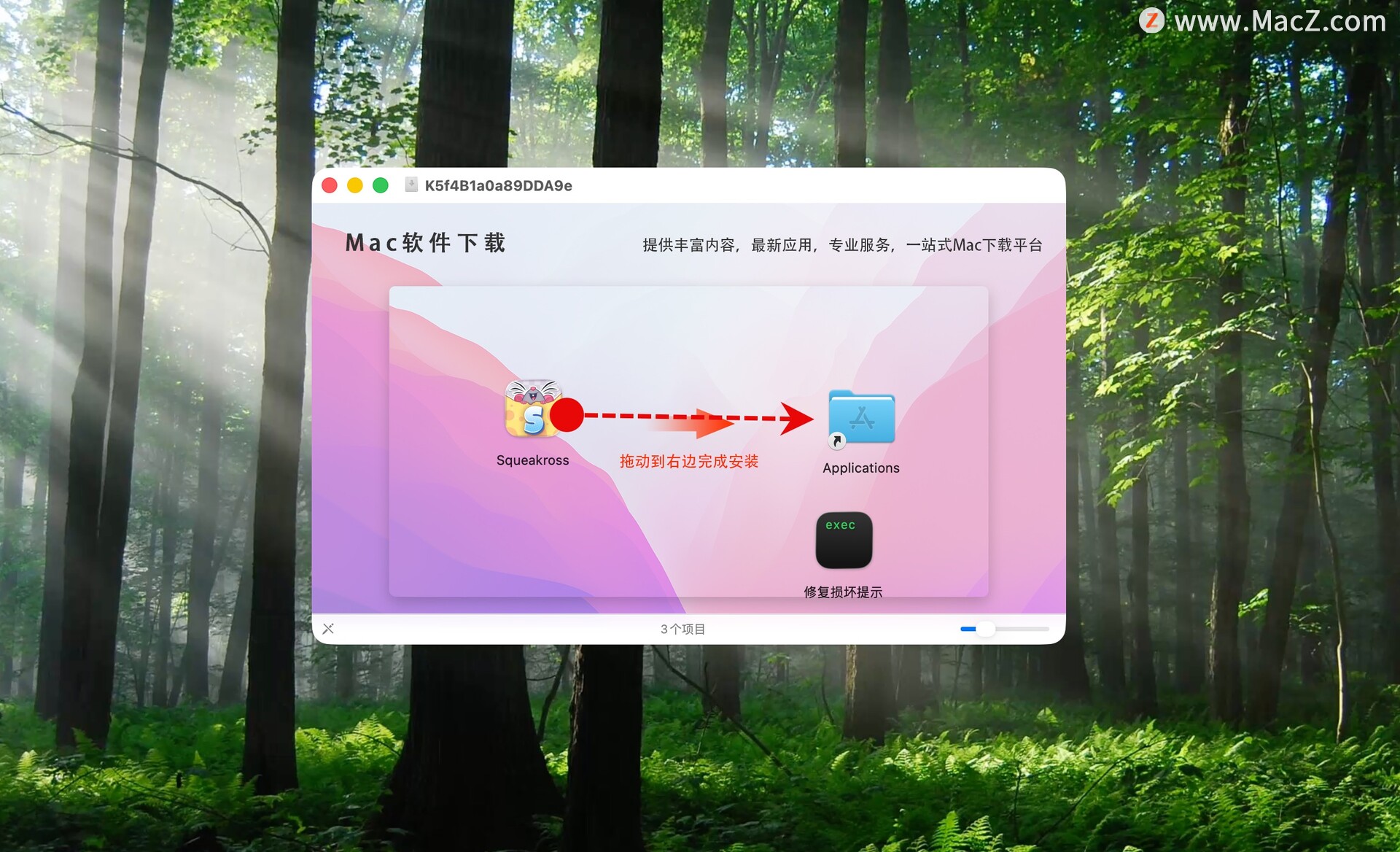 将左侧的Squeakross: Home Squeak Home拖动到右侧的应用程序中即可,如图