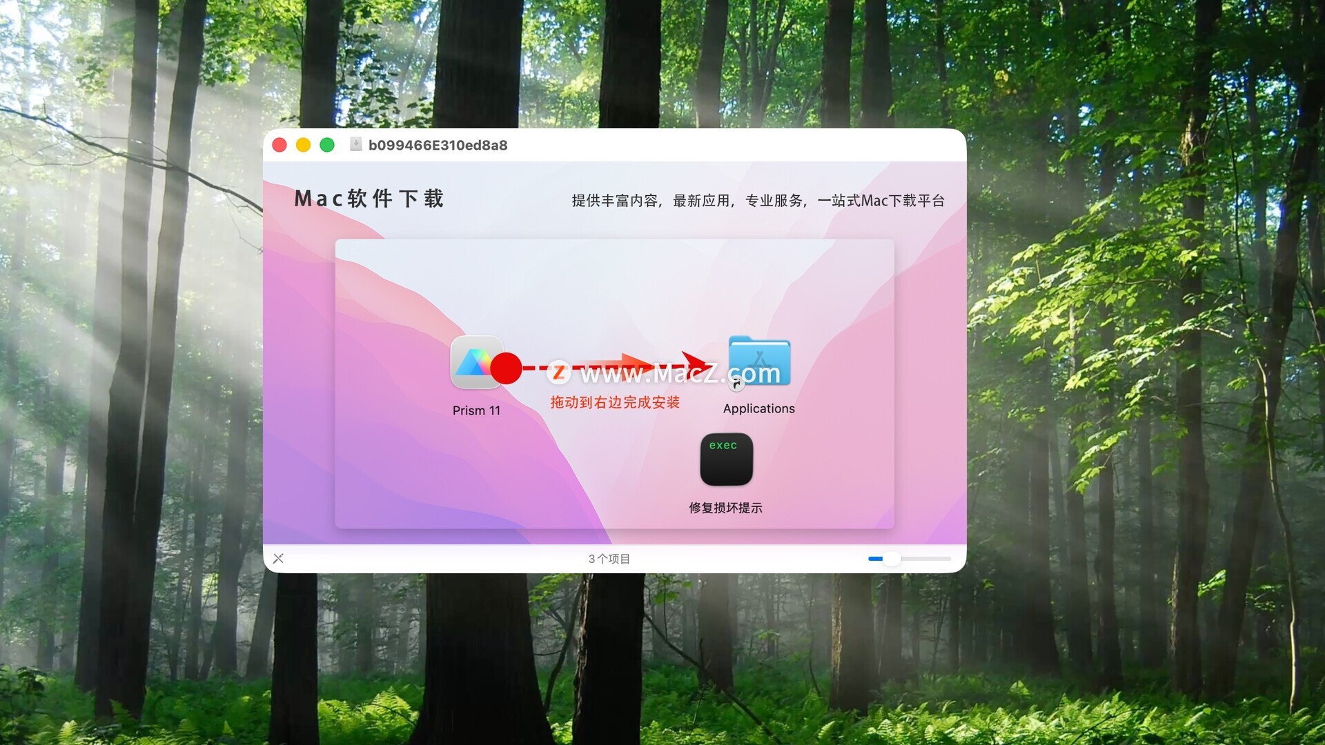 安装包下载完成后,拖动左侧的Prism 11到右侧应用程序中即可