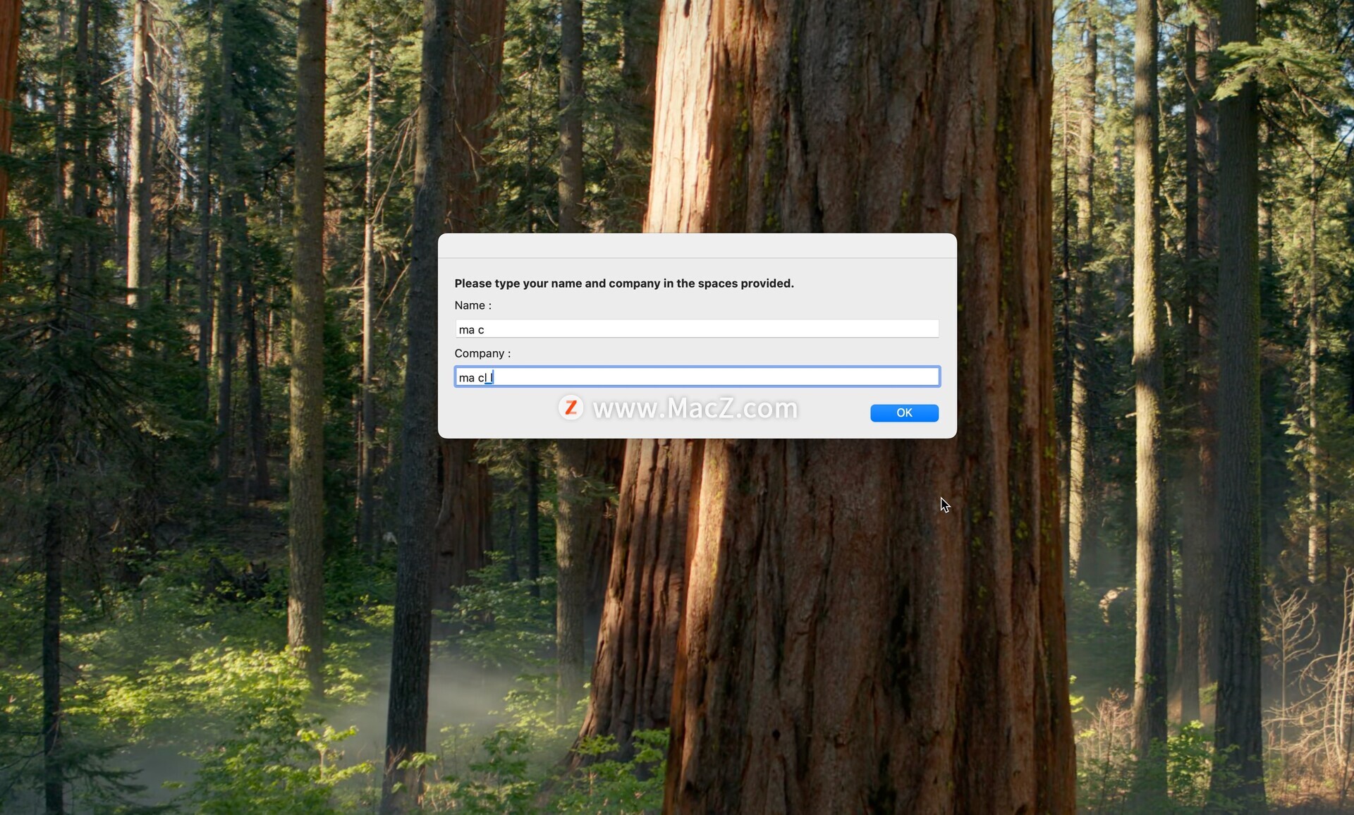 默认安装,直到弹出输入用户名和公司名字窗口,随便输入即可,点击【OK】如图