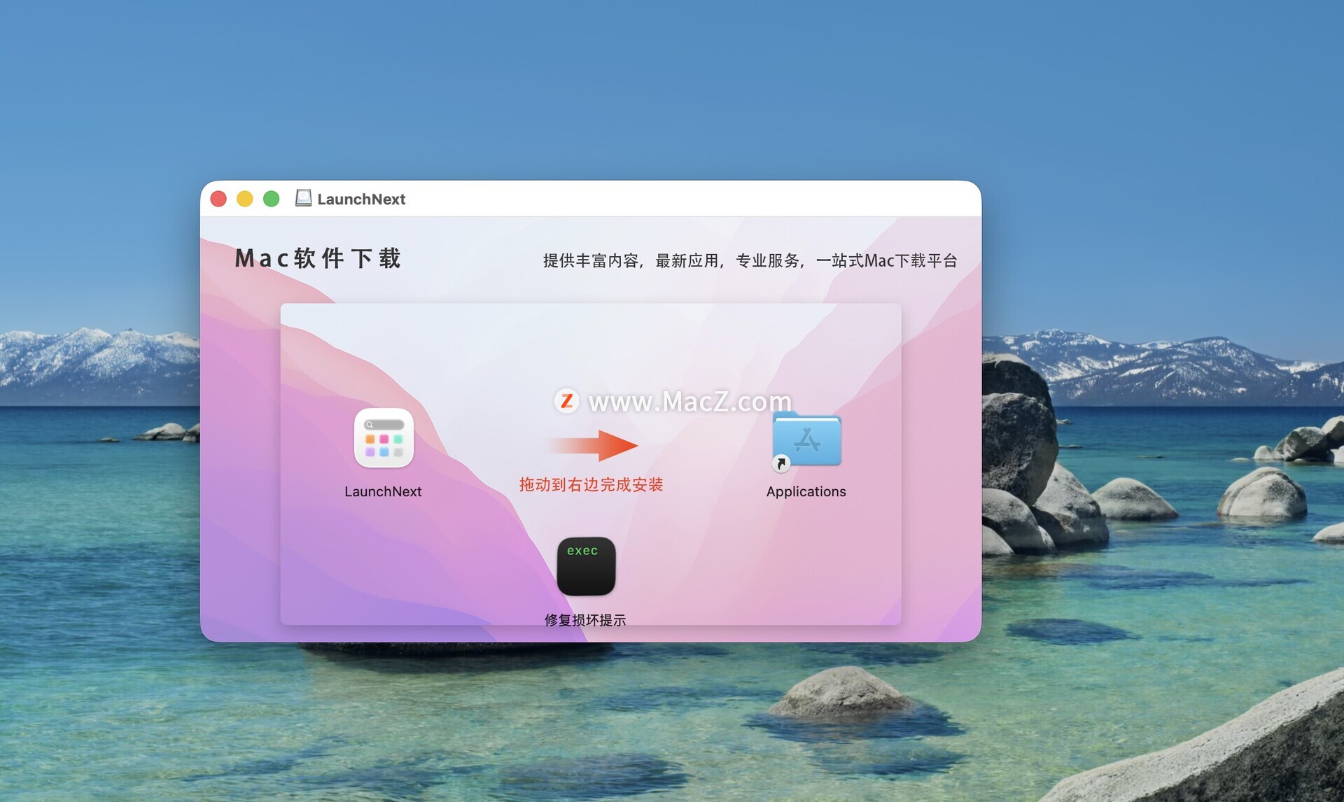 下载完成后,把左侧LaunchNext软件拖动到右侧文件夹即可。