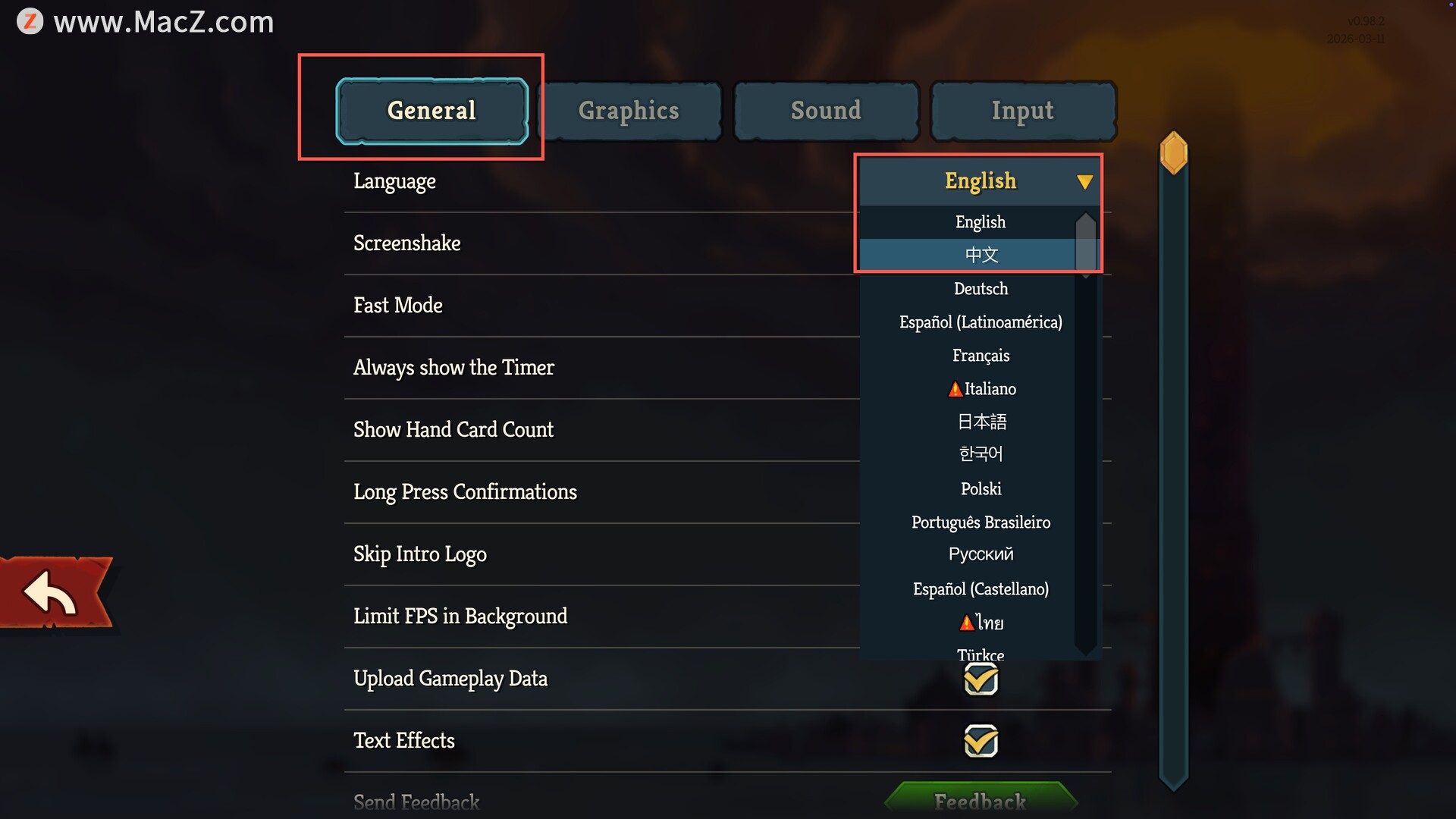 杀戮尖塔 Mac版中文设置