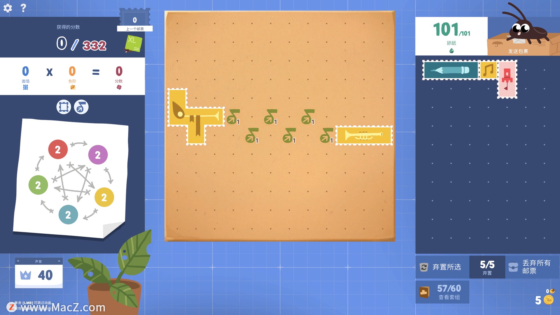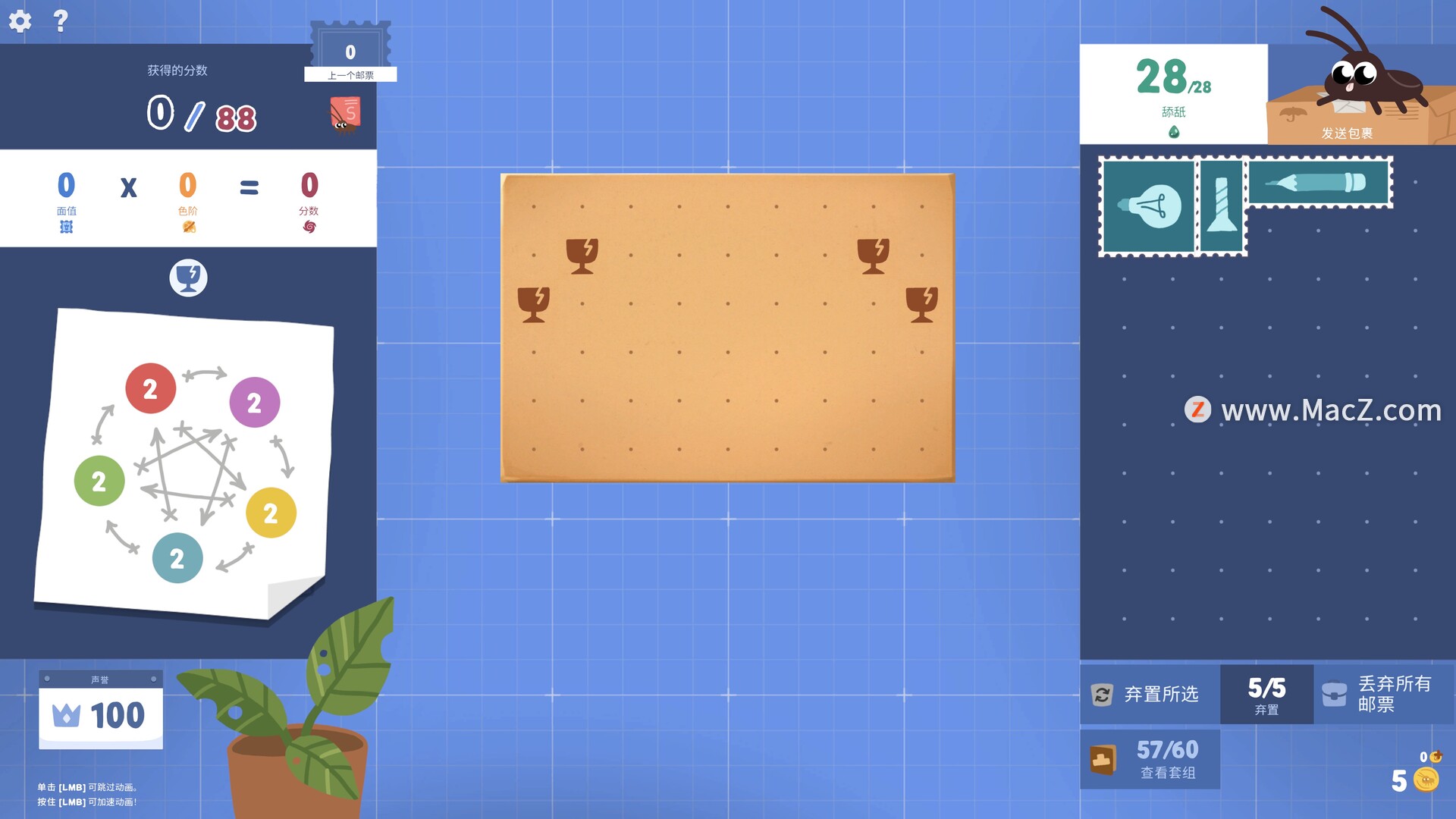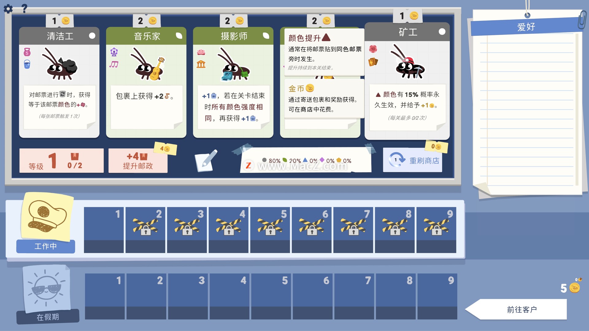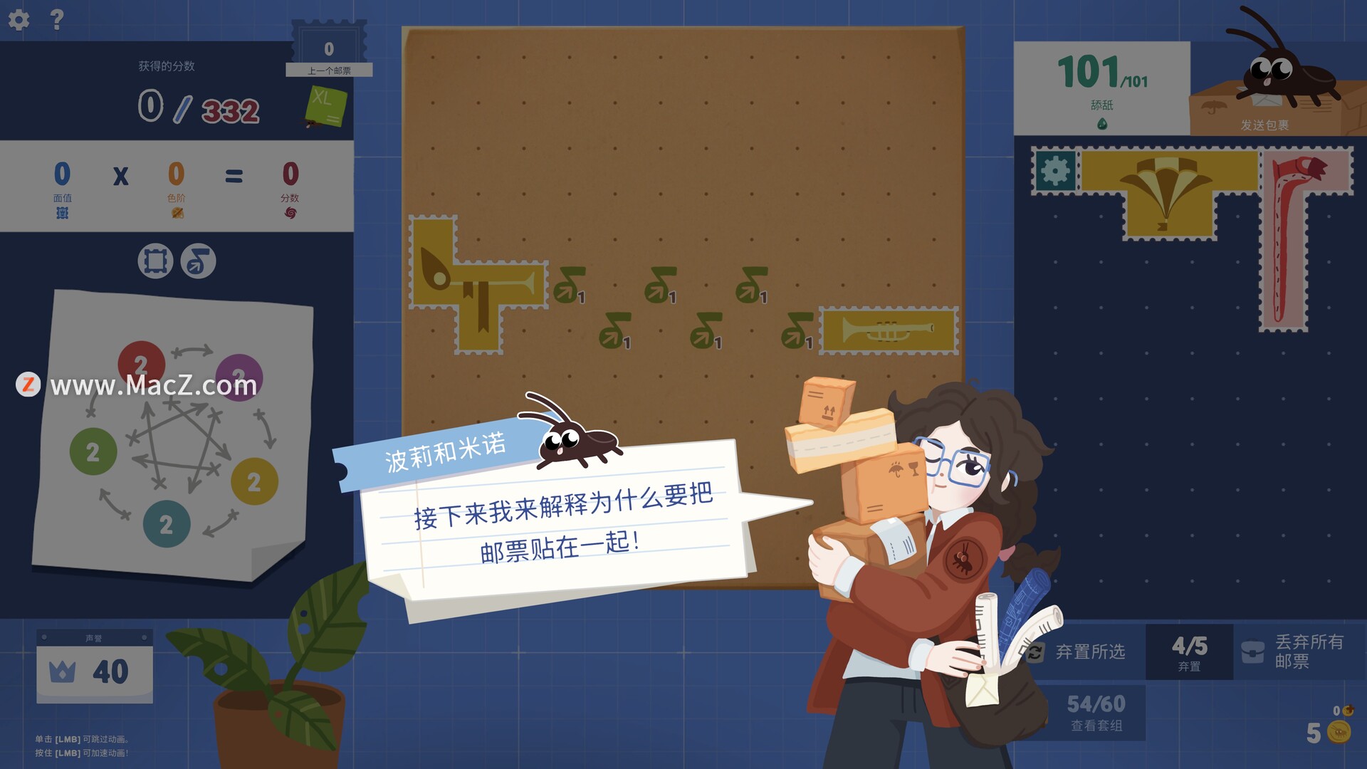 根据皇家邮政学院的命令恢复废弃的邮政所!接待访客,发送包裹,雇佣最可爱的蟑螂员工,并在邮政甜点谜题中通过无情的检查。脑筋急转弯,需要将不同形状和大小的邮票粘贴在一起以获得积分并发送包裹。您是一名新邮递员,根据皇家邮政学院的命令,您必须恢复一个废弃的邮政所。这将由邮政所的唯一居民——最可爱的蟑螂员工来帮助您!