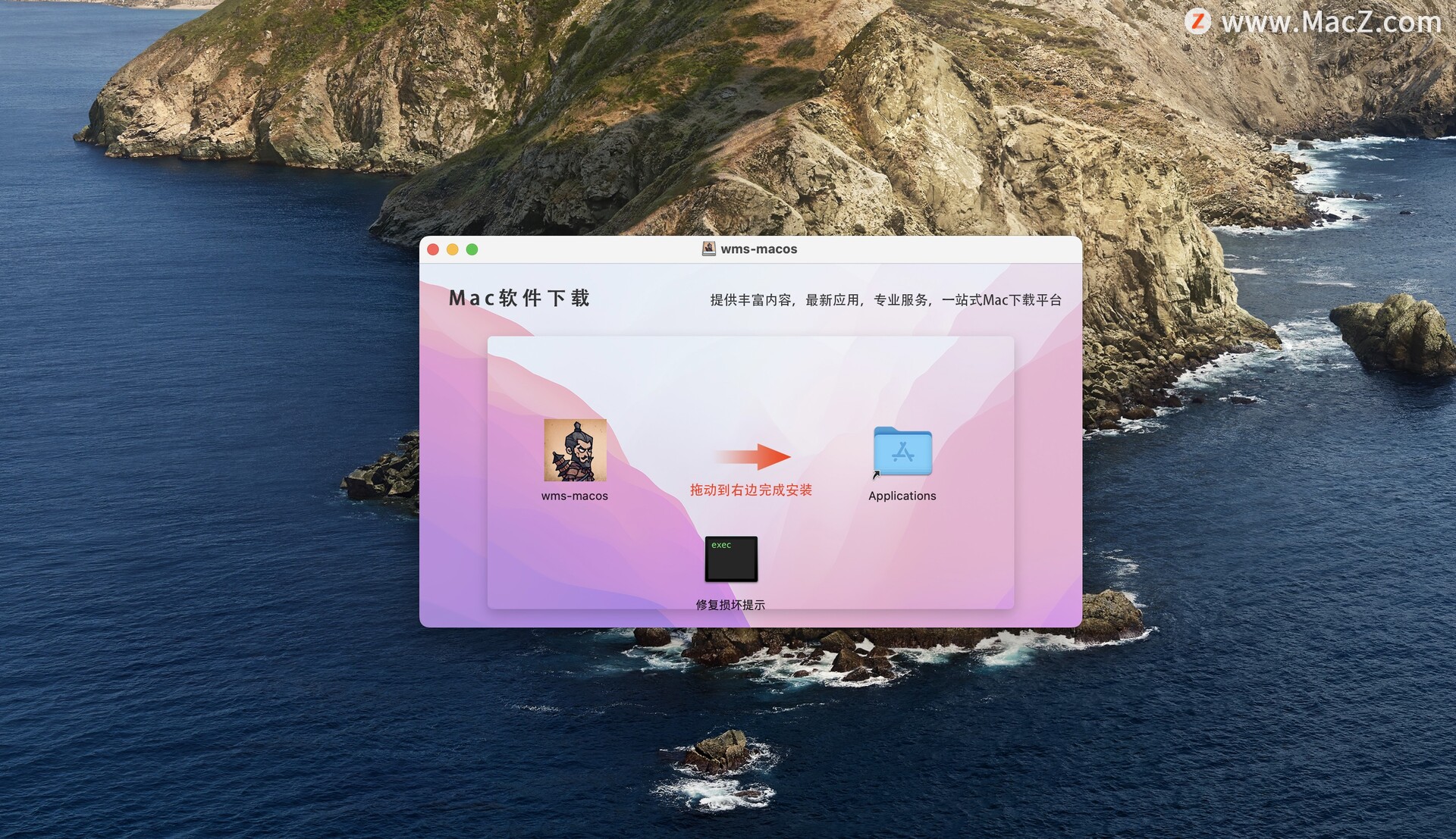 下载并打开,把左侧游戏拖动到右侧应用程序文件夹即可