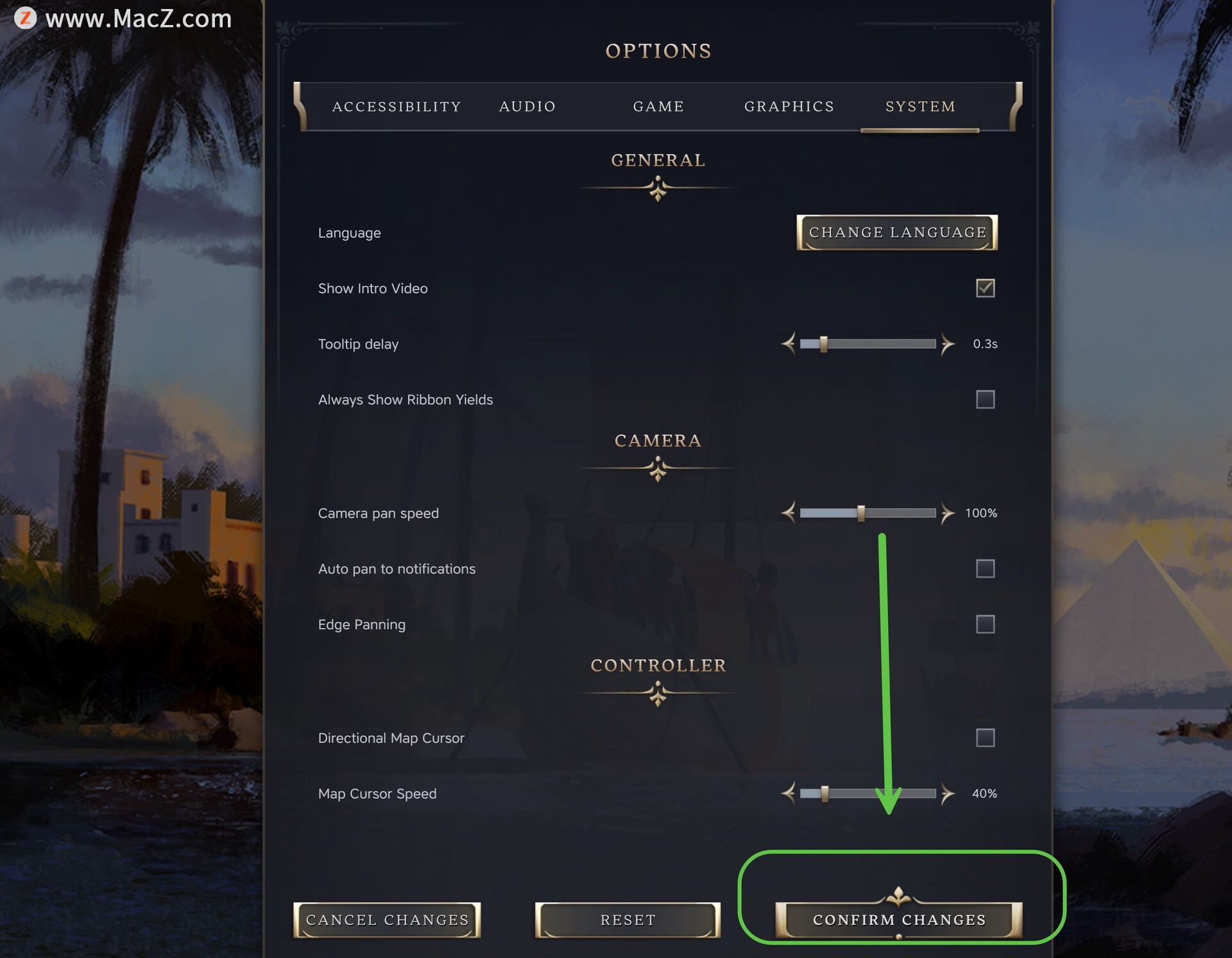 点击确认更改CONFIRM CHANGES,点击OK,重启游戏即可!