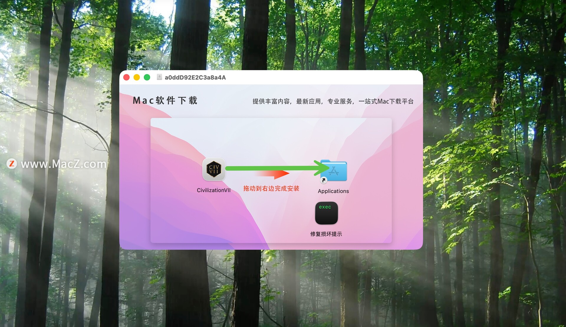 将左侧的Civilization VII拖动到右侧的应用程序中即可如图