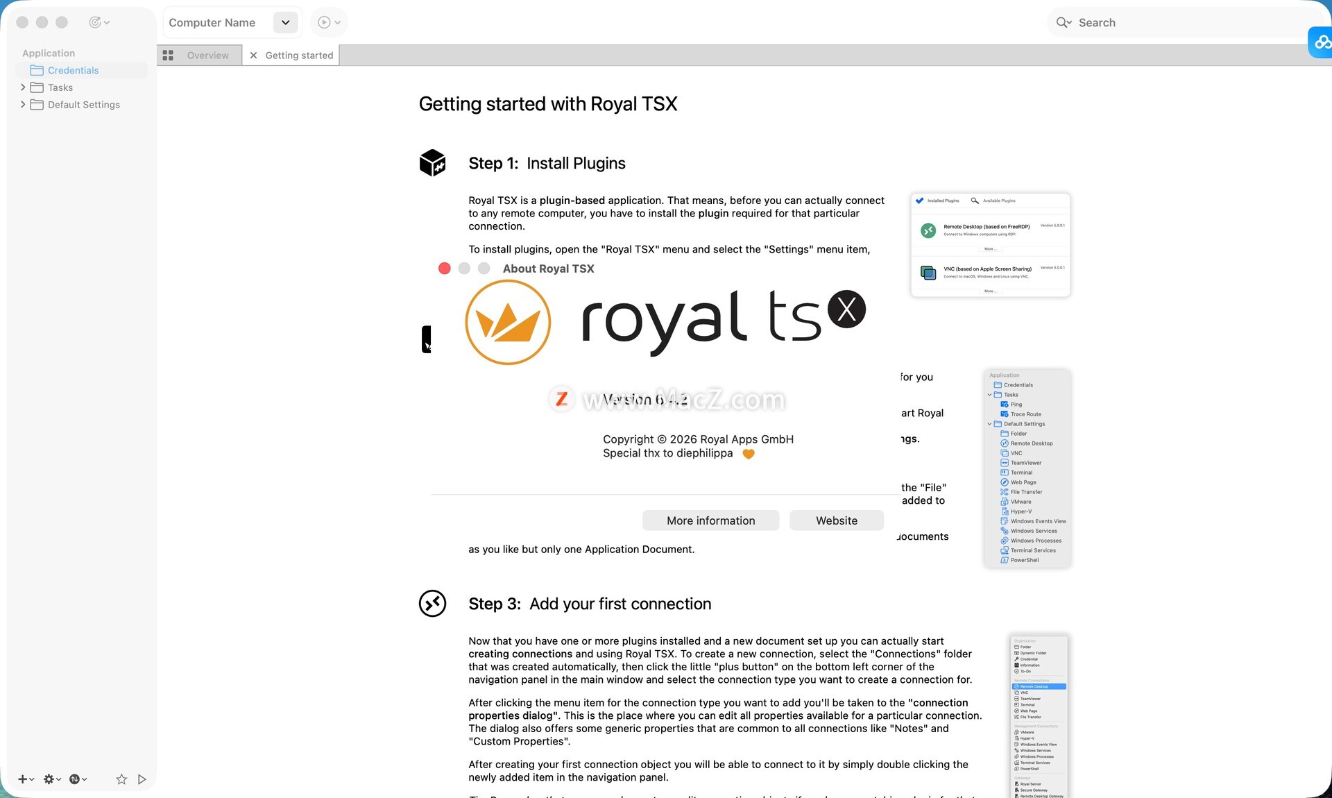 Royal TSX文档可以完全互换,并且与Royal TS(对于Windows),Royal TSX(对于macOS),Royal TSi(对于iOS)和Royal TSD(对于Android)兼容。
