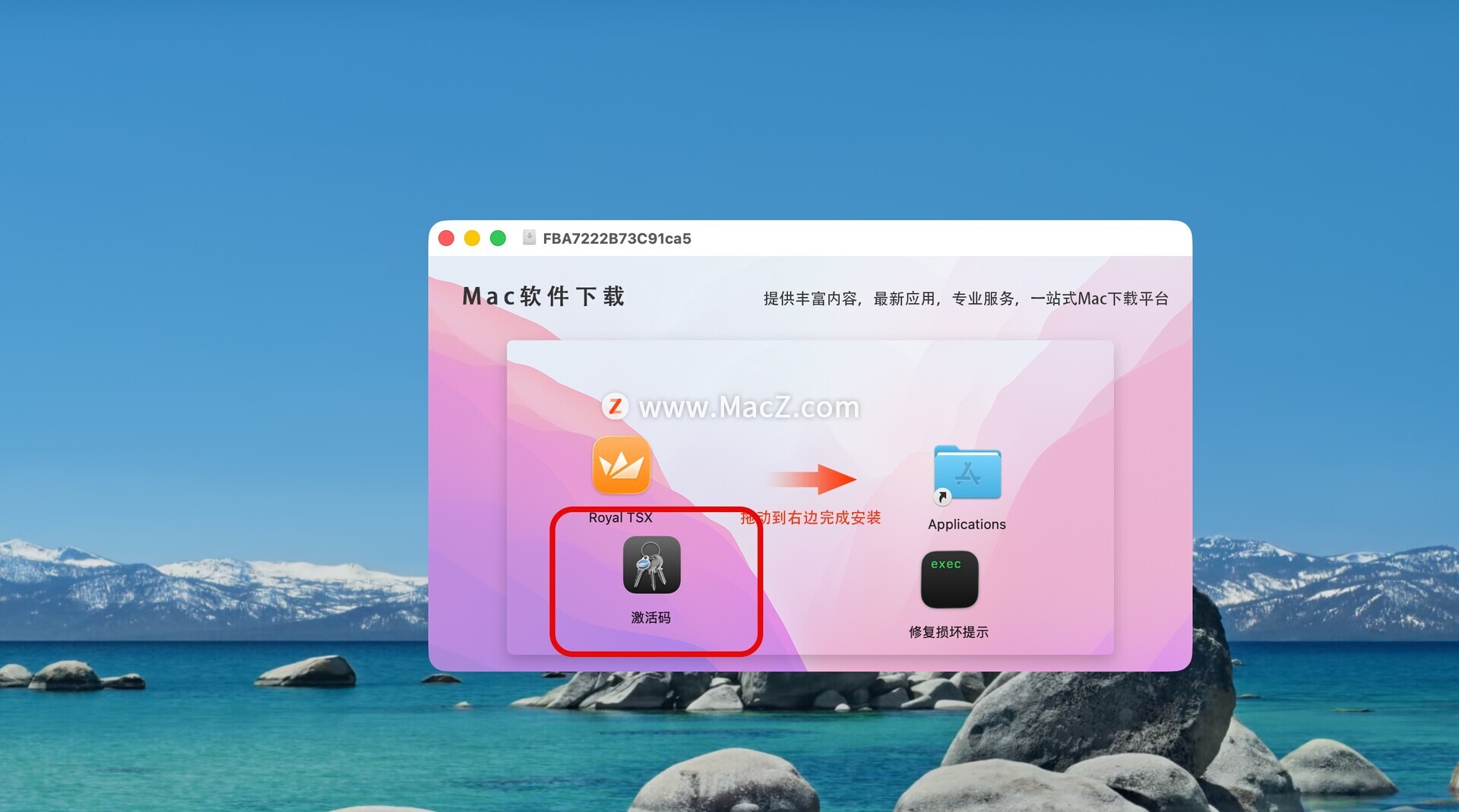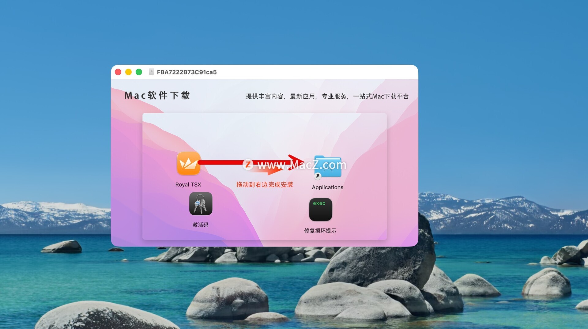 将左侧的Royal TSX 拖动到右侧的应用程序中即可,如图