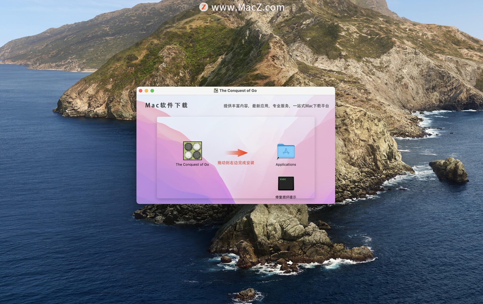 下载完成后,打开安装包,将左侧文件拖动到右侧文件夹即可。