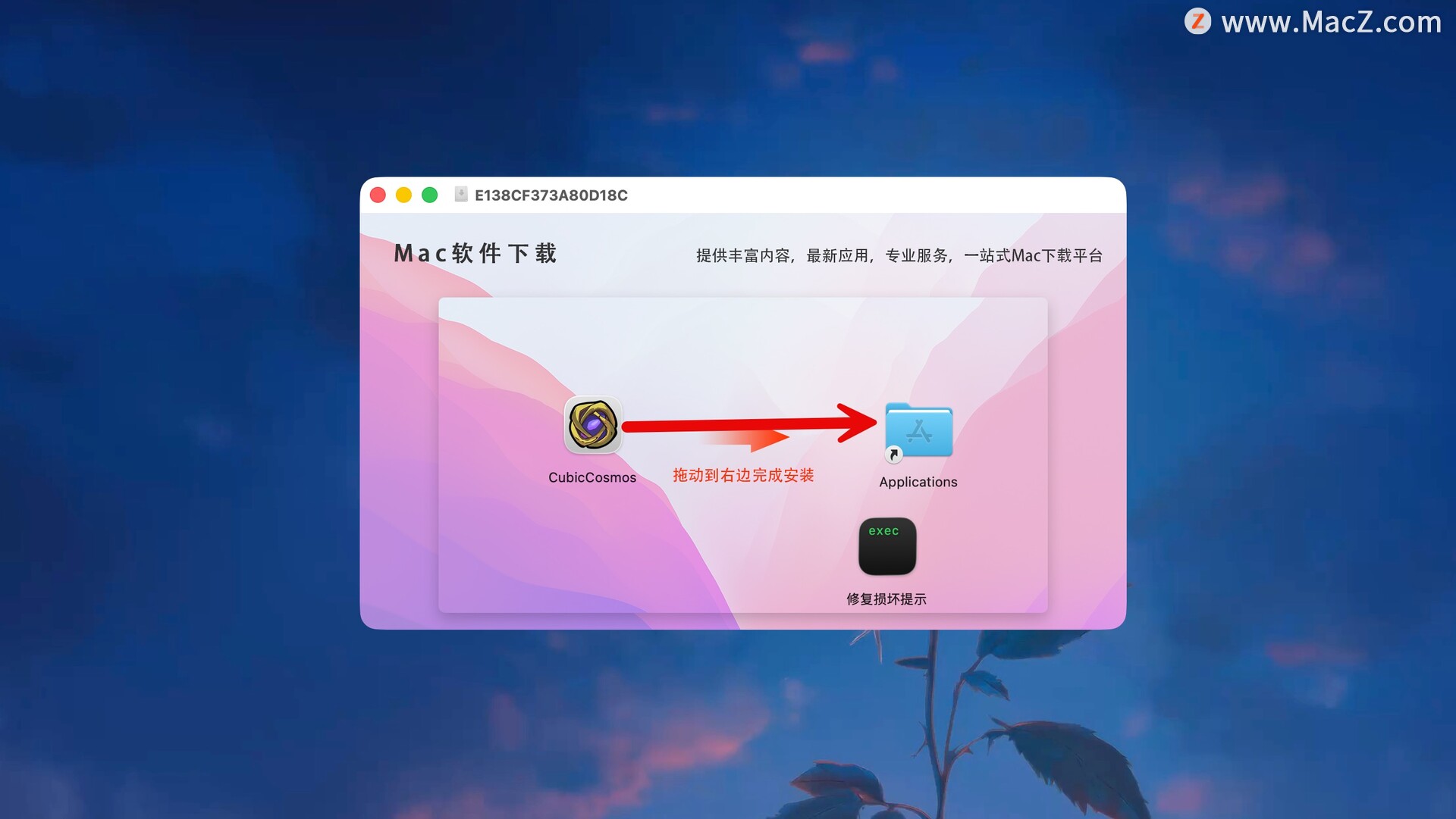 将左侧的Cubic Cosmos拖动到右侧的应用程序中即可,如图