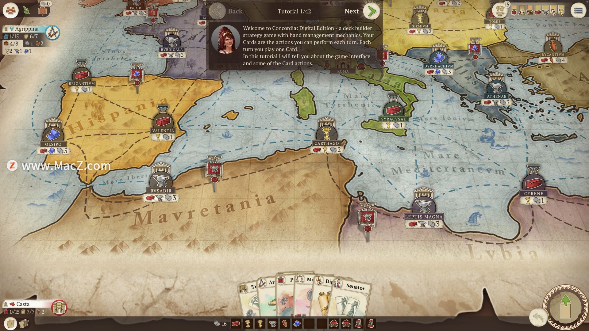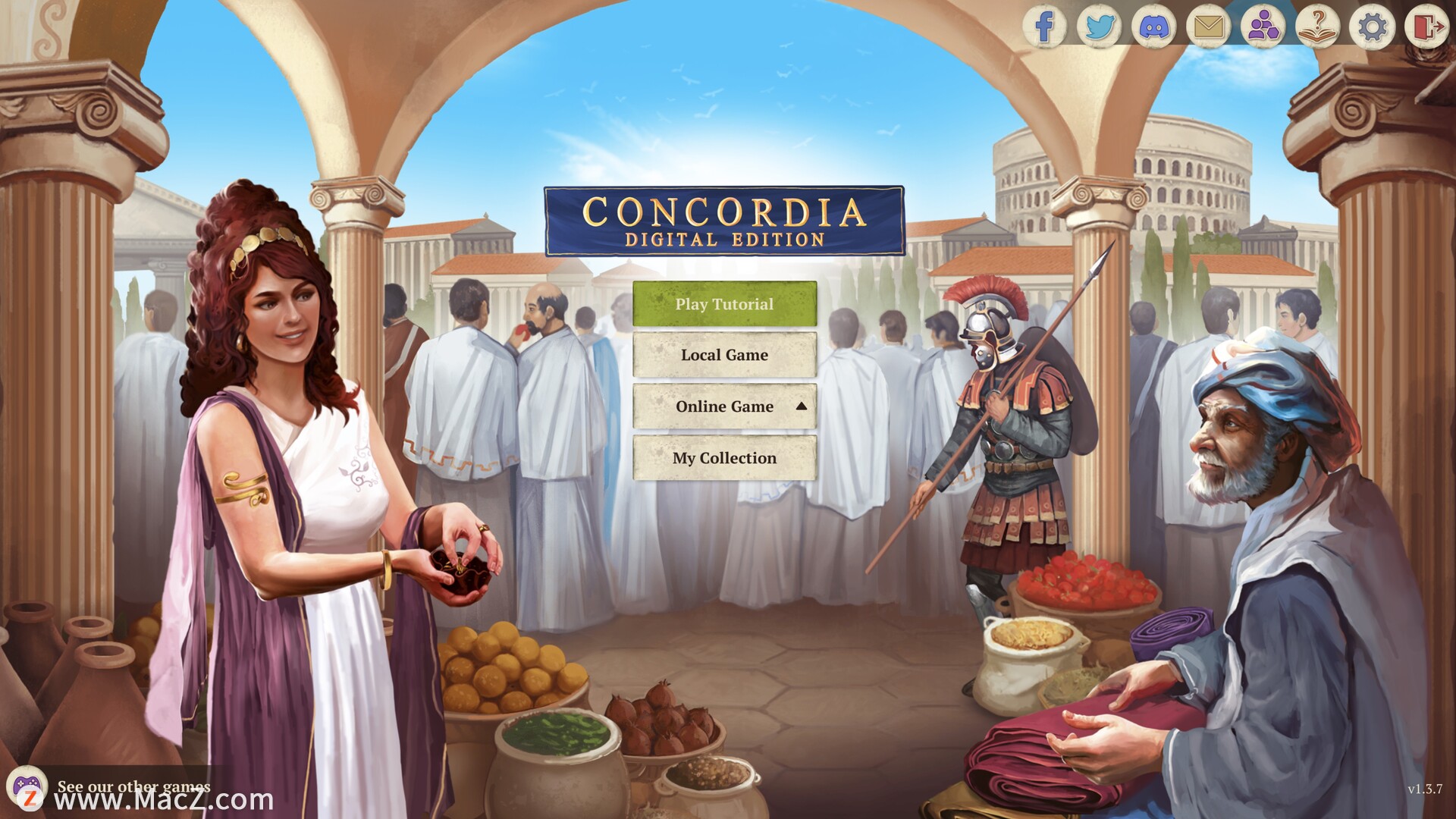 Concordia: Digital Edition一款以古罗马为背景的回合制经济策略游戏。玩家化身罗马商人,在古代世界地图上通过卡牌驱动、贸易扩张、资源管理与城市建设,争夺财富与影响力,2-6 人对抗,目标是建立地中海最庞大的贸易帝国concordia.acram.eu。