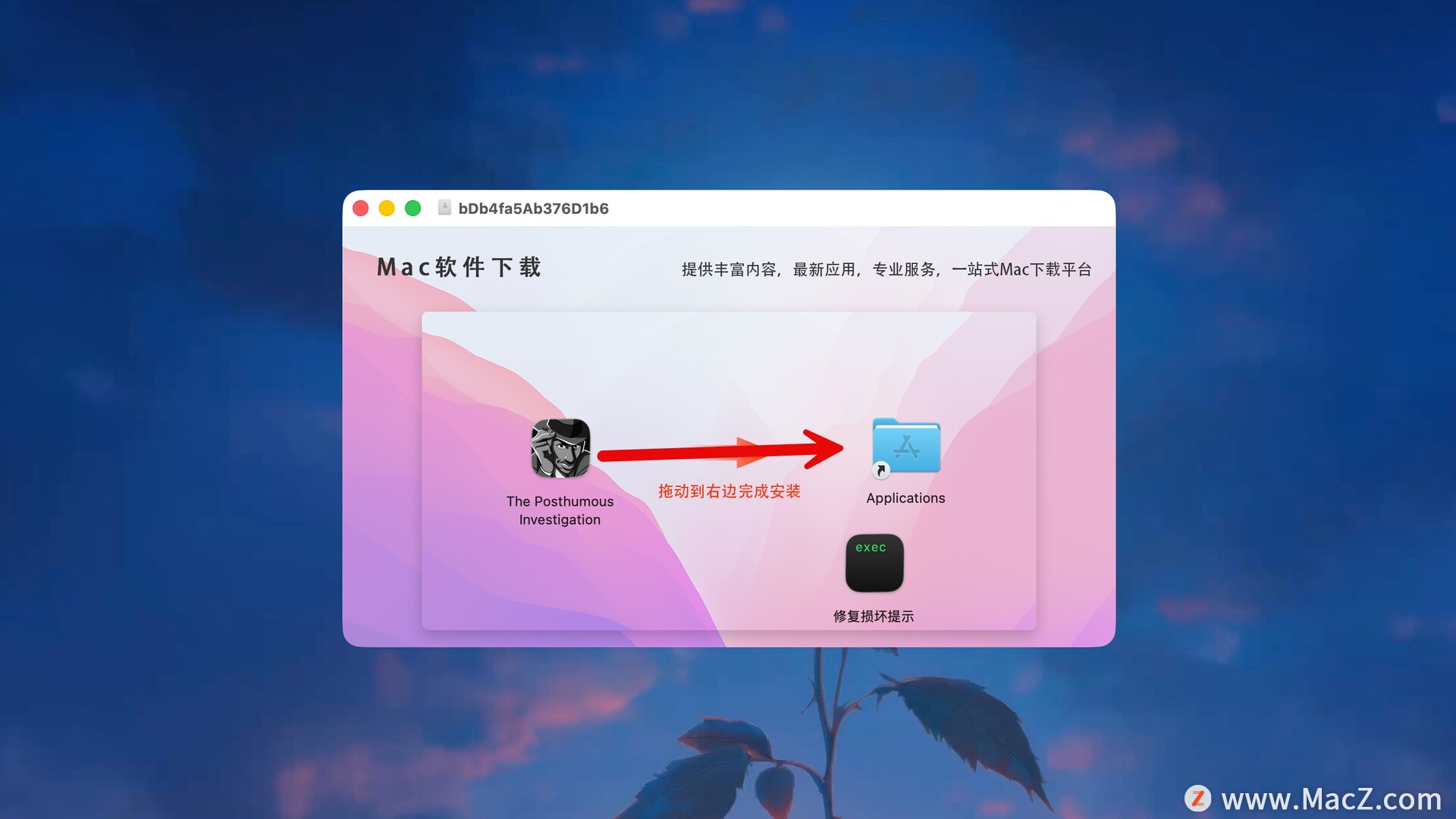 将左侧的The Posthumous Investigation拖动到右侧的应用程序中即可,如图