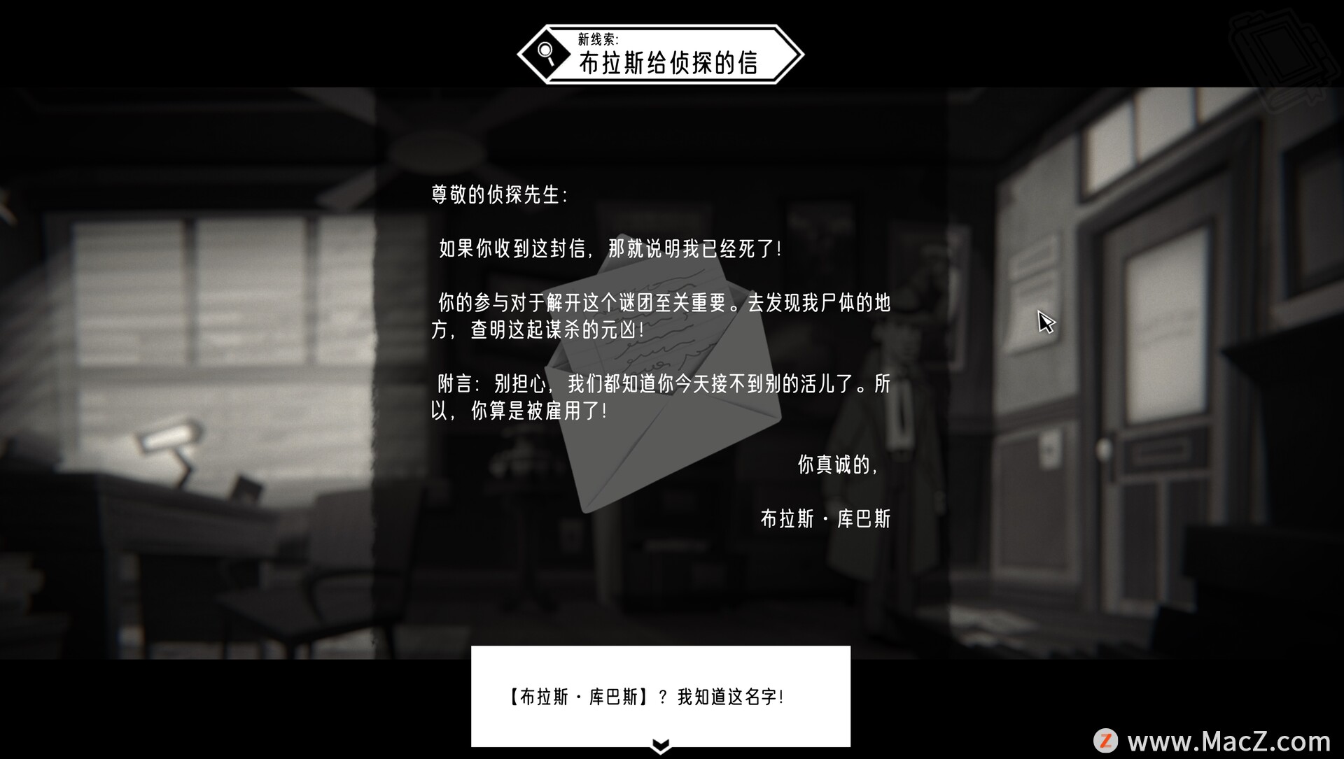 《布拉斯·库巴斯的死后委托》(The Posthumous Investigation)是一款黑色电影风格推理冒险游戏。游戏的核心剧情设定受巴西文学巨匠马查多·德·阿西斯的经典小说《布拉斯·库巴斯死后的回忆》启发,采用了“死后委托”这一独特的叙事视角。玩家扮演一名私家侦探,受雇于一位特殊的客户——已故的二十世纪里约热内卢企业家布拉斯·库巴斯。这位死者将侦探困在一个时间循环中,要求其必须调查清楚自己死亡的真相与幕后凶手