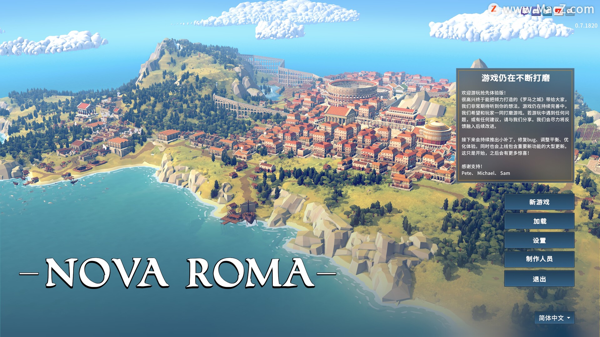 Nova Roma(罗马之城) 是由 Lion Shield 开发、Hooded Horse 发行的古罗马题材城市建造与策略经营游戏,于 2026 年 3 月在 Steam 开启抢先体验。玩家将在罗马帝国衰落后,带领幸存者于新大陆重建文明,从荒芜村落发展为繁荣城邦。