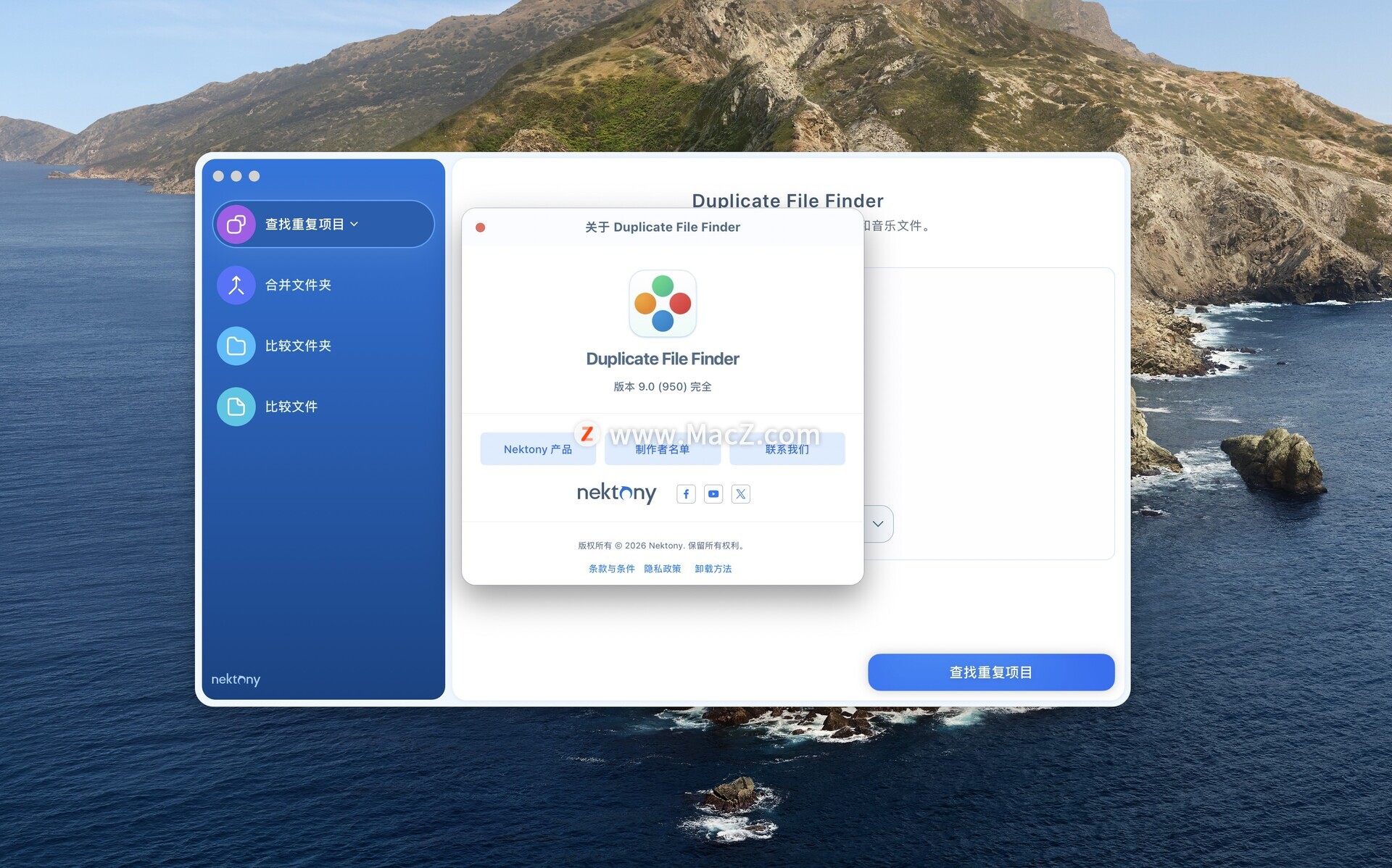 Duplicate File Finder mac版是一个十分好用的重复文件快速查找器,可以根据文件类型、路径、文件大小等条件来扫描出电脑里面所有的重复文件,从而轻松清理删除它们。对于有电脑洁癖的人来说这是一款不可多得的好工具。测试环境:MacOS 26.2