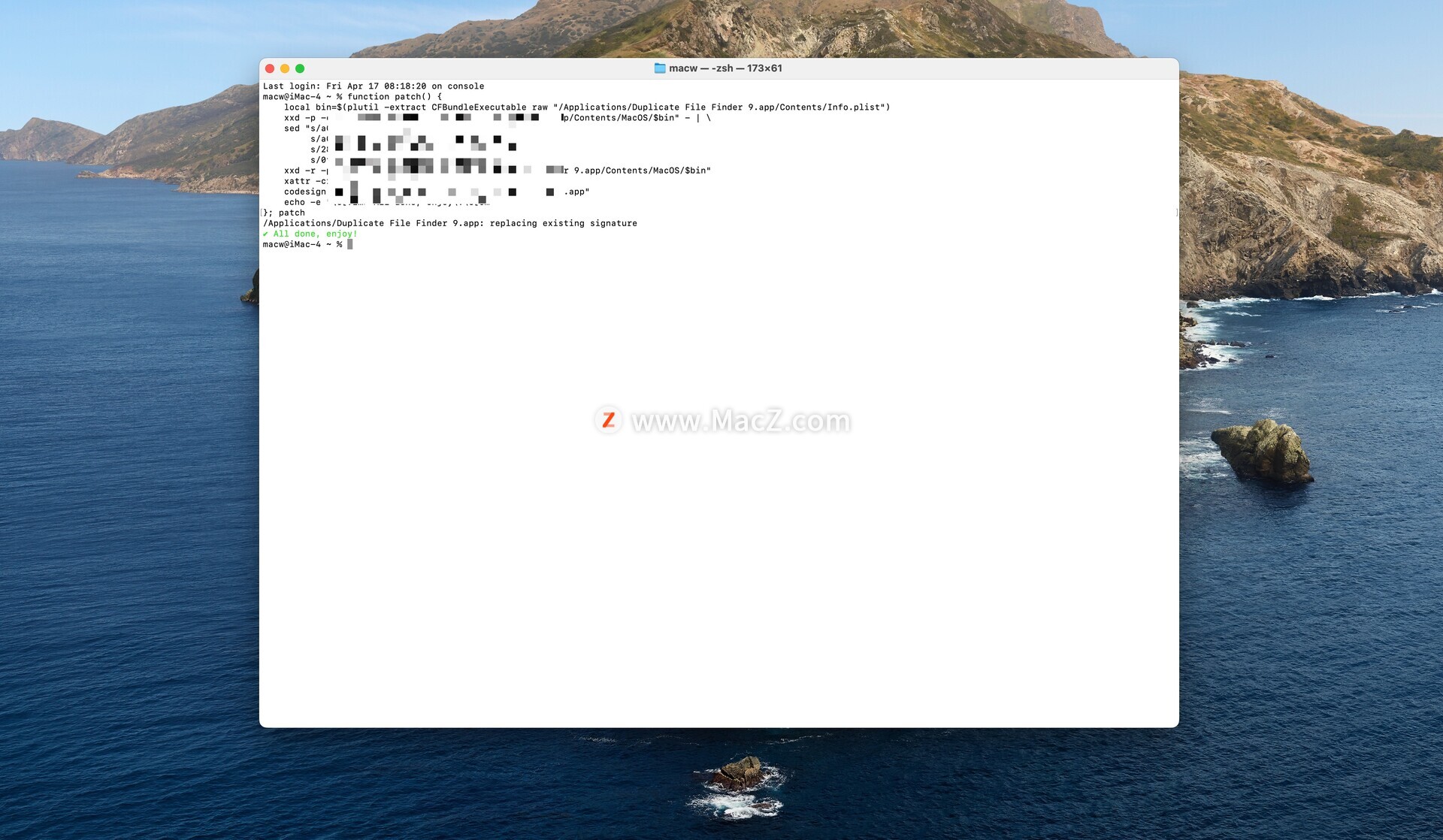 应用程序-实用工具中打开终端,粘贴注册码,回车,直至运行完成