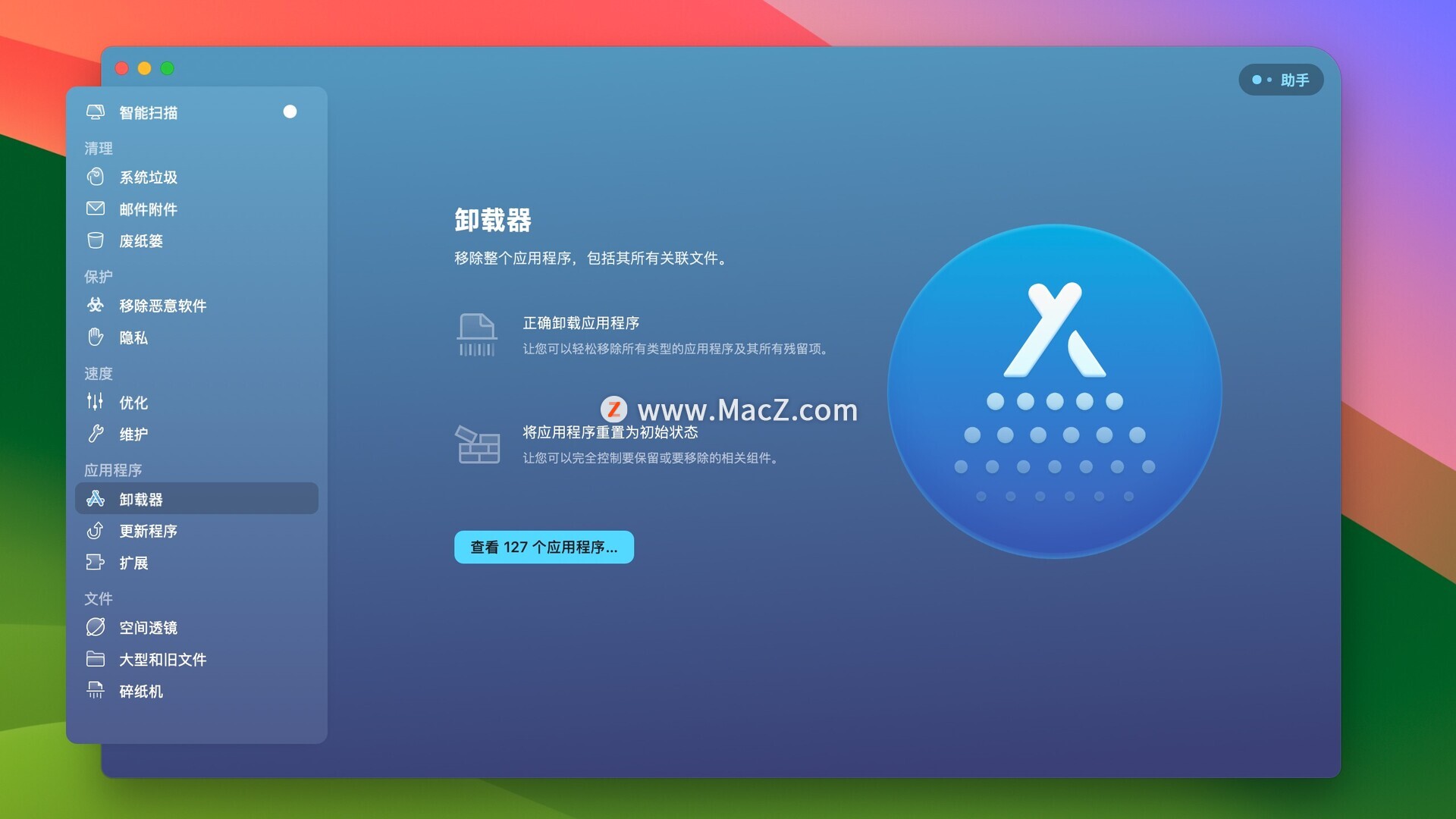 CleanMyMac X是一款专业的Mac清理、优化和维护工具。它可以帮助用户清理系统垃圾、卸载不需要的应用程序、优化系统性能、保护隐私和安全等。
