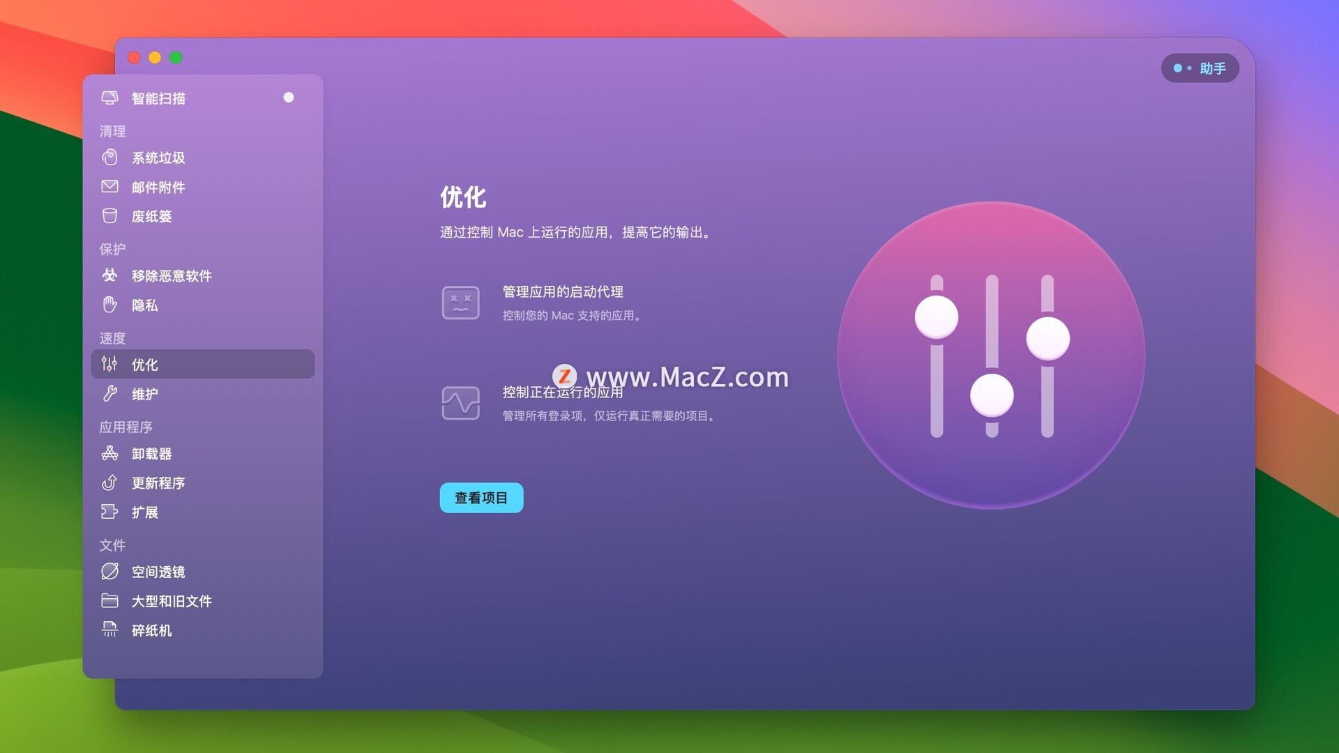 每次你的Mac停止时,你都有一整套加速工具:释放RAM,维护脚本,登录项控件,启动代理和挂起应用程序。这将减少您的系统负载并调整Mac以获得最佳***能。当您的机器高效工作时,您也可以高效工作。