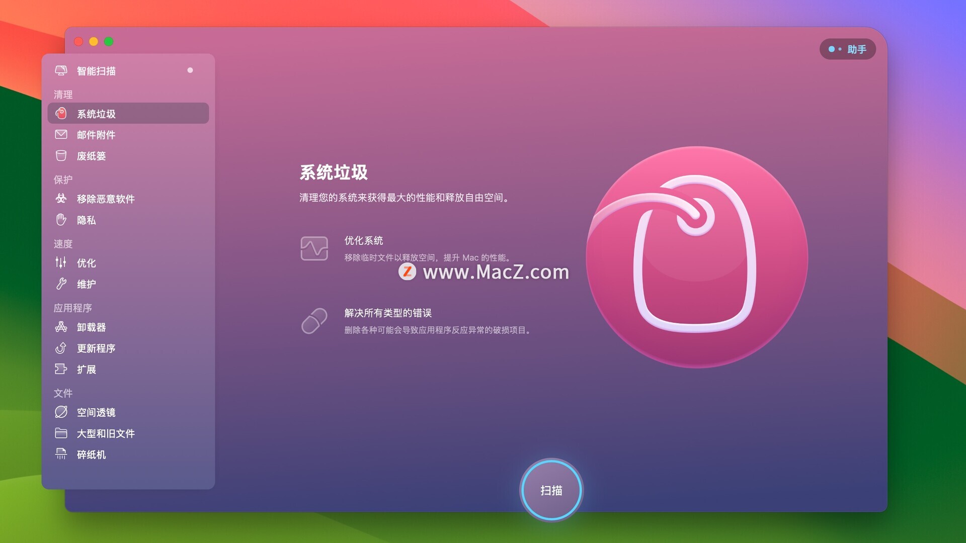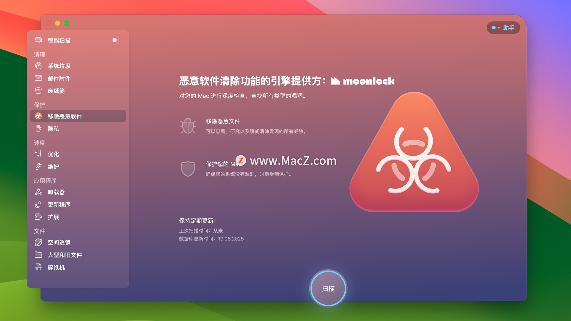 CleanMyMac X for mac是MacOS上一款Mac清理优化工具,不仅包含各种清理功能,更是具有卸载器、维护、扩展、碎纸机这些实用功能,可以同时代替很多工具。它可以清理,优化,保养和监测您的电脑,确保您的Mac运行畅通无阻!